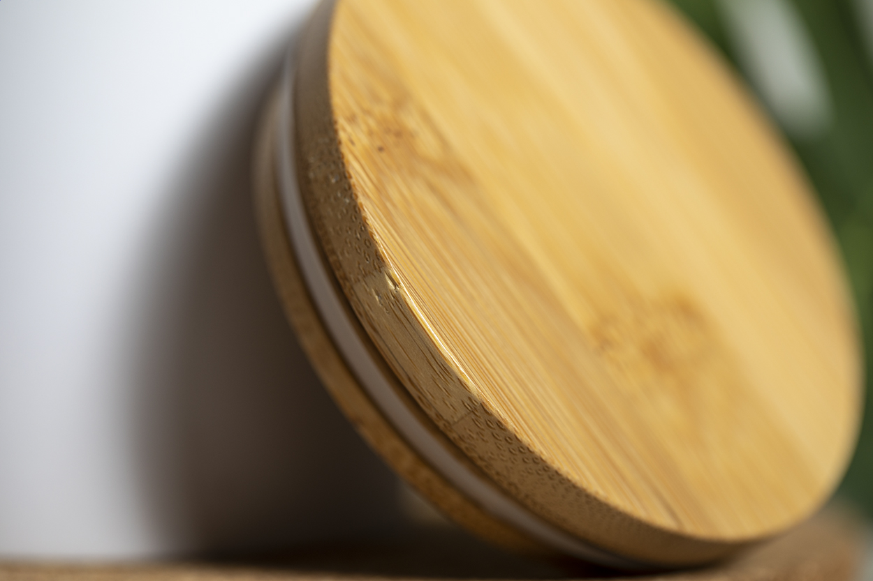 Cană ceramică cu finisaj mat și capac de bambus, 370 ml. În cutie de hârtie kraft.