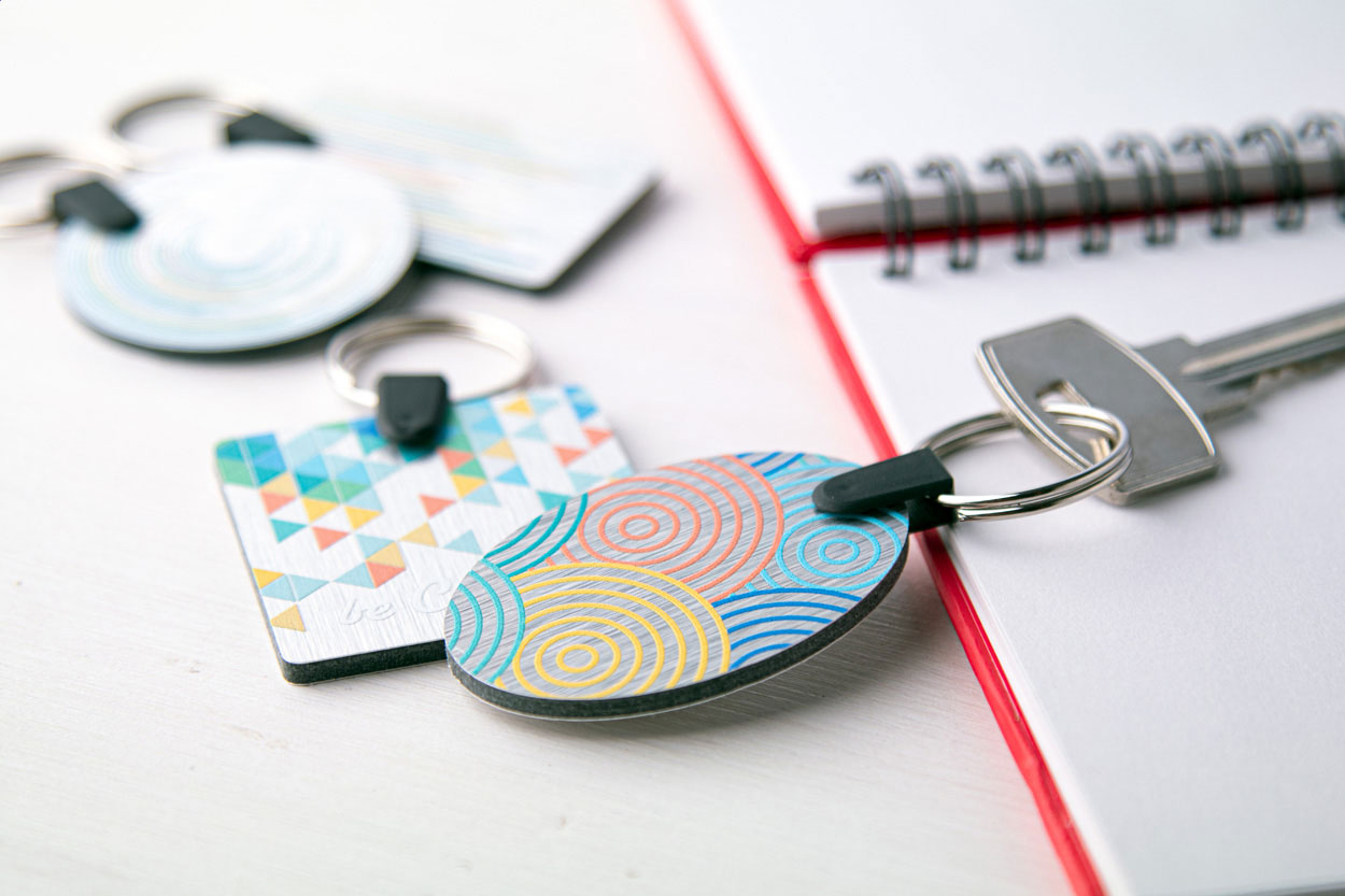 Breloc oval din aluminiu periat, cu personalizare full colour. Pretul include imprimarea cu UV LED pe o parte. Cantitate minima de comanda 100 buc.