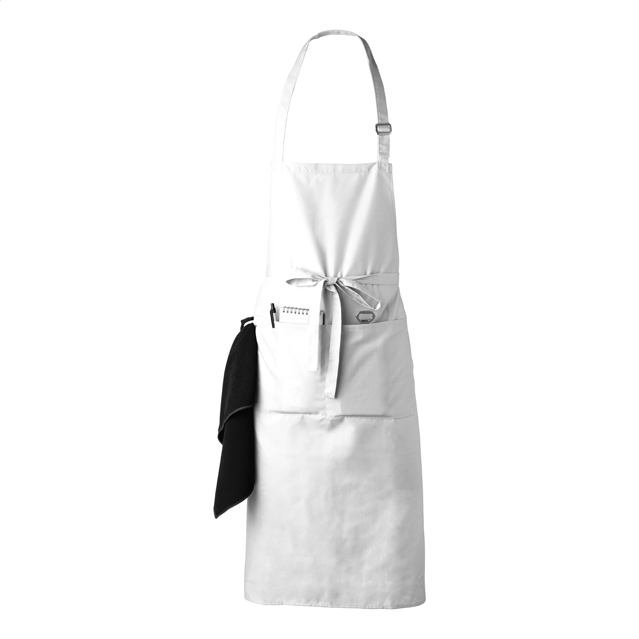 Șorț colorat cu buzunare frontale. Material: 80% poliester / 20% bumbac.
