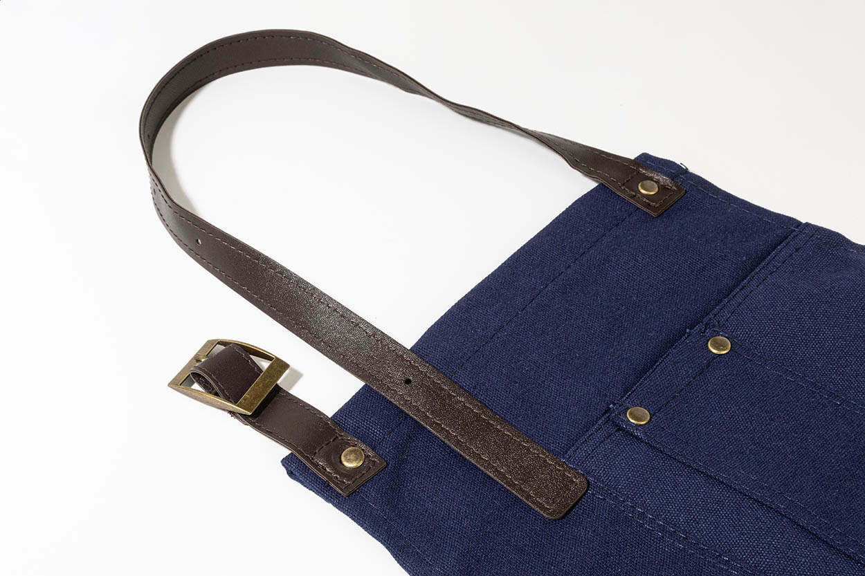 Șorț din bumbac cu buzunare frontale, curele reglabile din înlocuitor piele, 340 g / m².