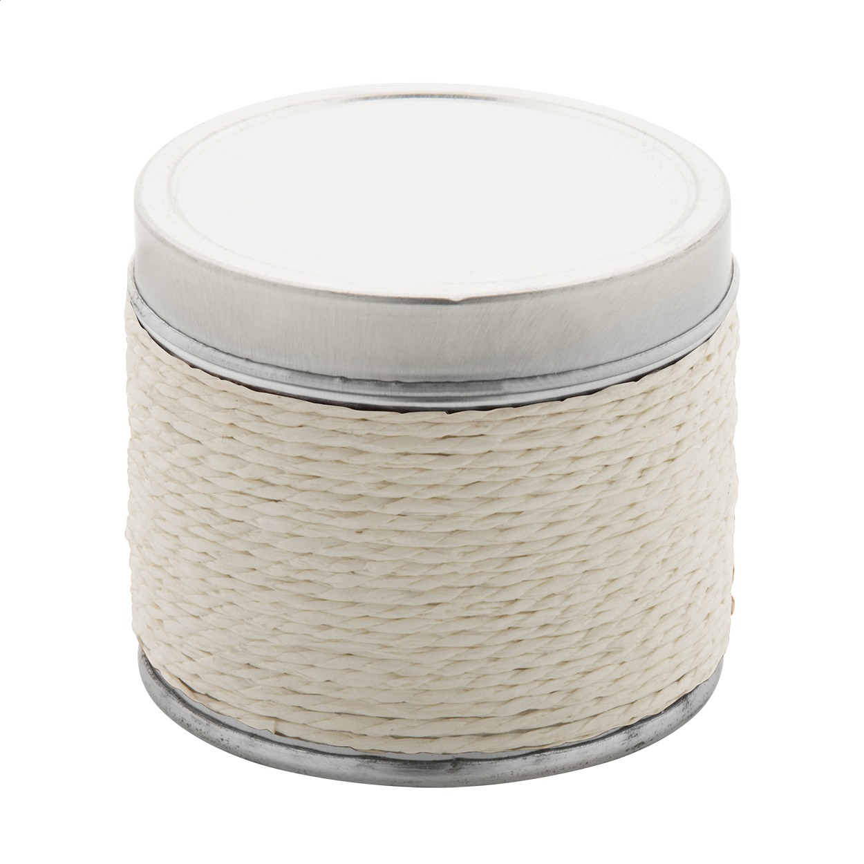 Lumânare parfumată, in cutie metalica cu decoratii din sfoara.