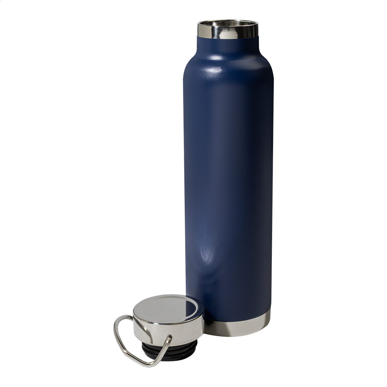 Double-wall stainless steel, copper insulated vacuum bottle with carry lid, 650 ml. Copper insulation keeps drinks hot for 12 and cold for 24 hours.