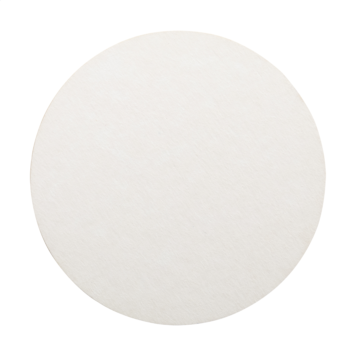 Custom made, absorbent paper coaster with custom graphics on one side. MOQ: 250 pcs.