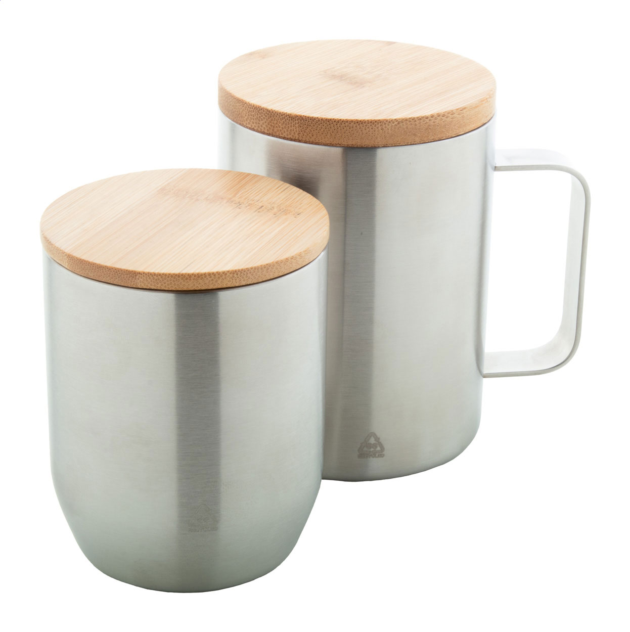Double-wall, recycled stainless steel thermo mug with bamboo lid, 350 ml.