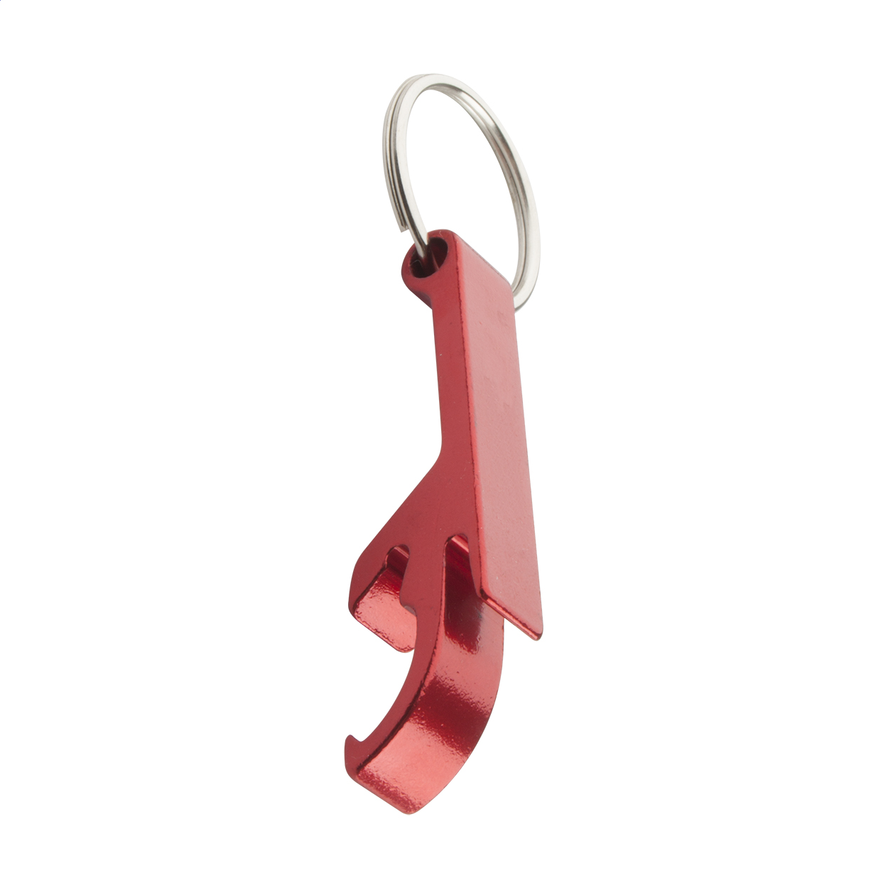Aluminium bottle and can opener with keyring.