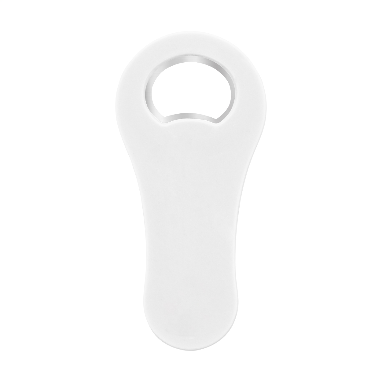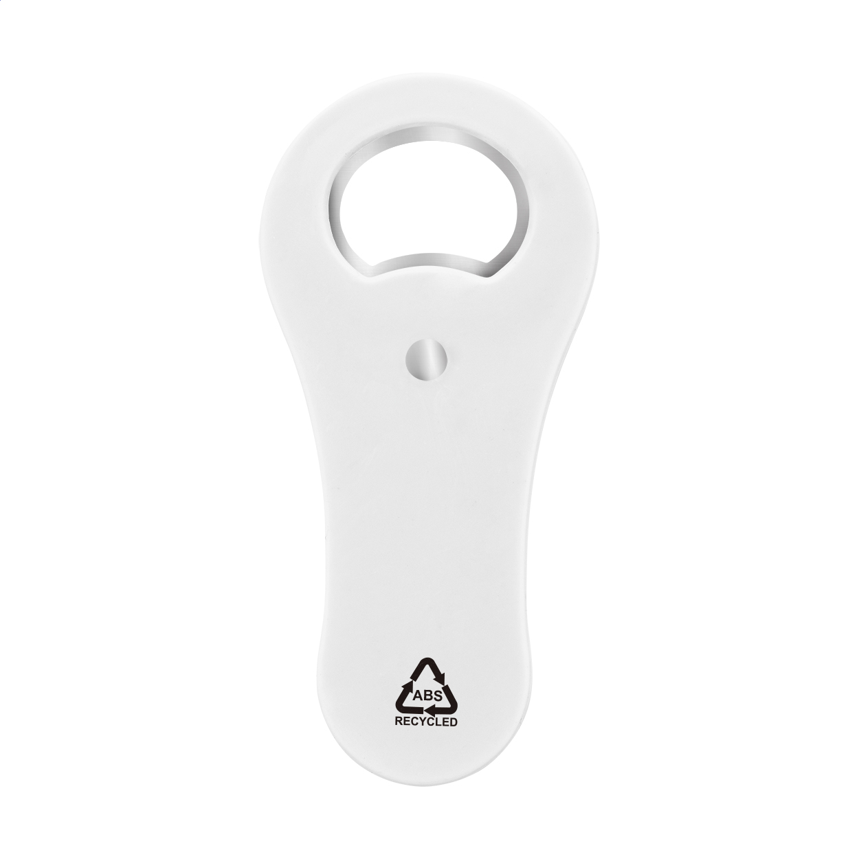 Recycled ABS plastic bottle opener with fridge magnet.