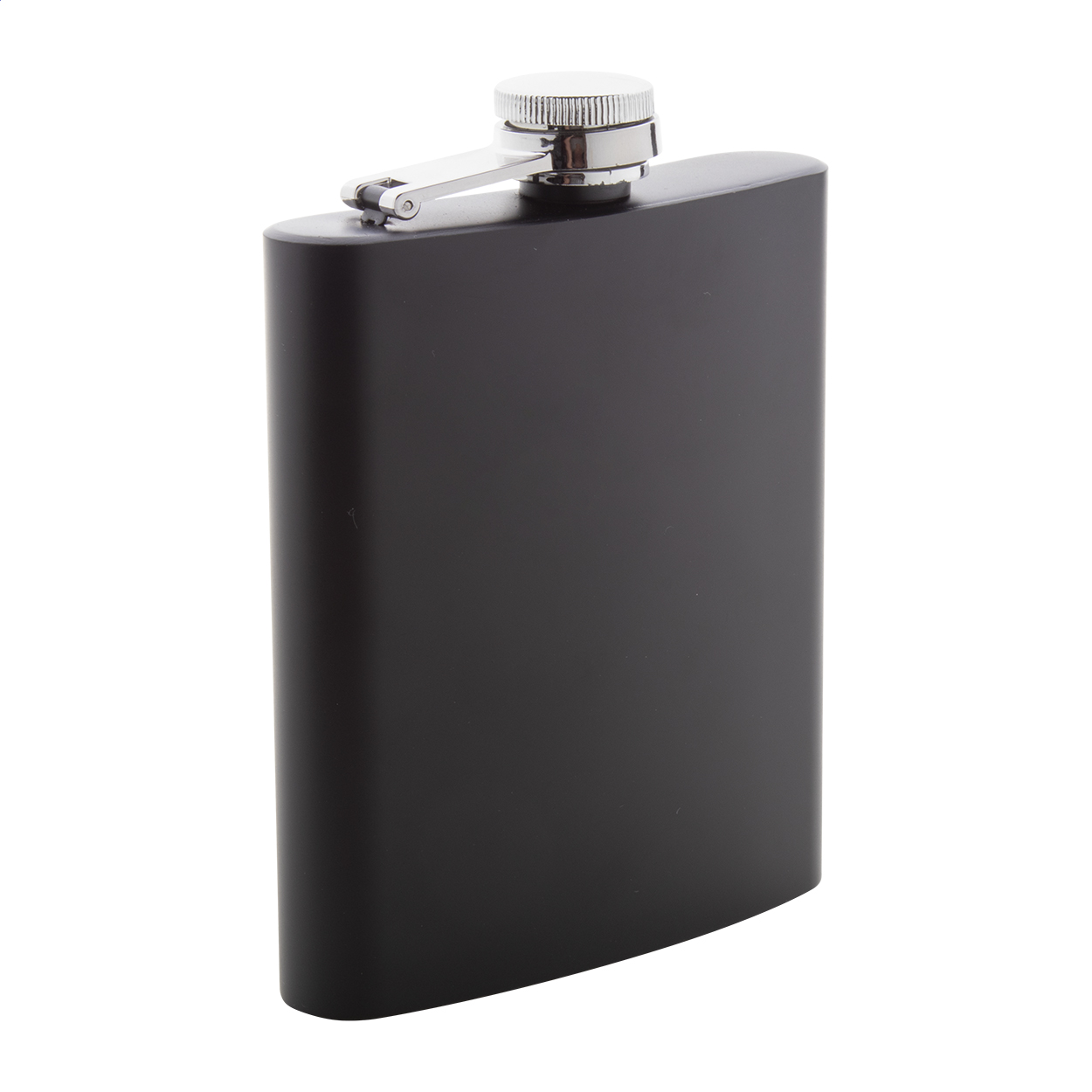 Stainless steel hip flask with black painted surface, 200 ml.