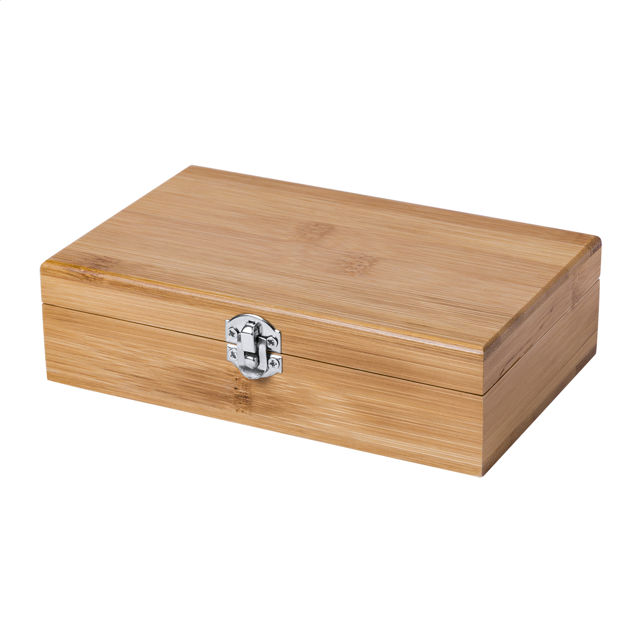 Bamboo wine set with corkscrew, drop stopper and plug in bamboo box.