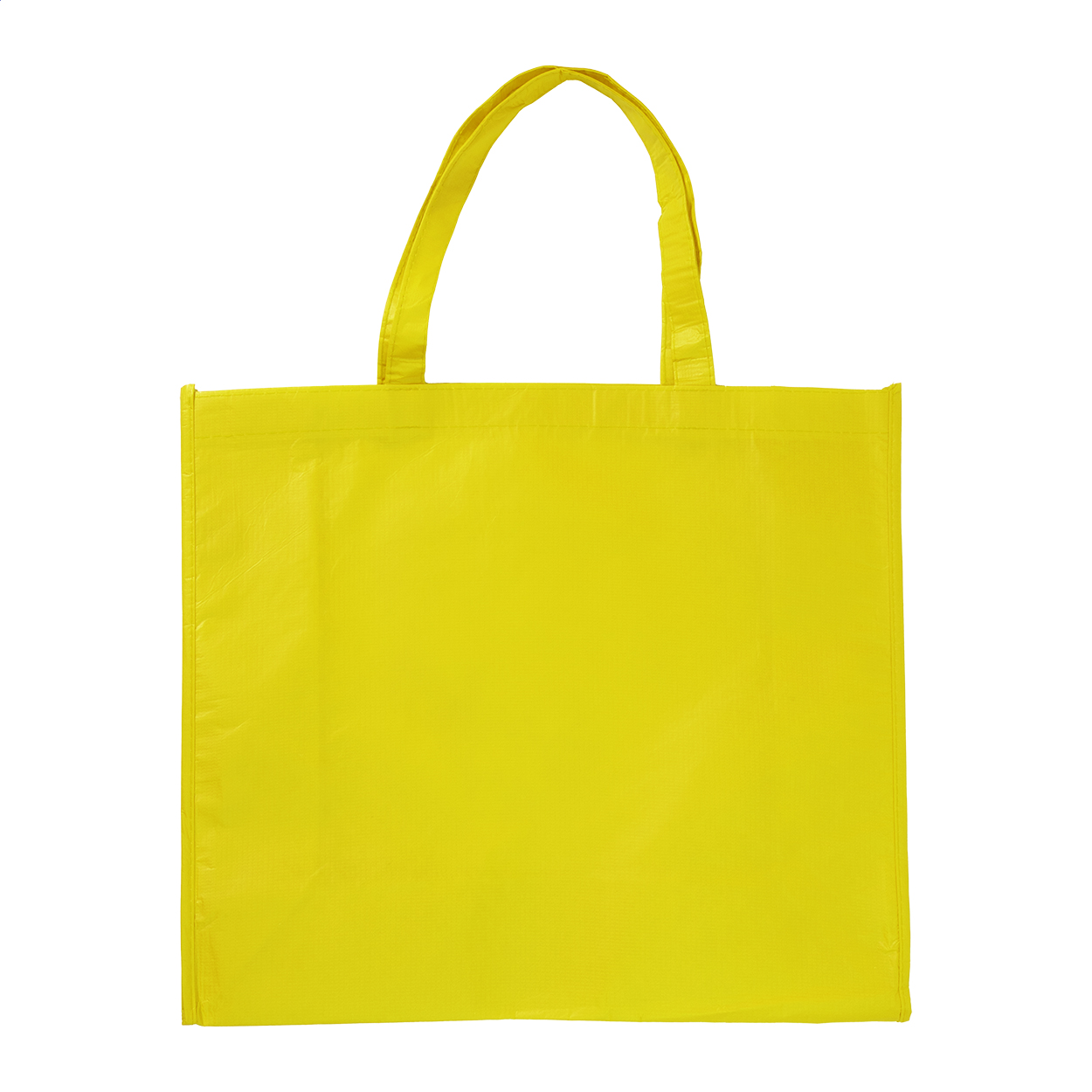 Laminated RPET shopping bag with gusset and medium handles, RPET polyester 105 g/m². With distinctive RPET label.
