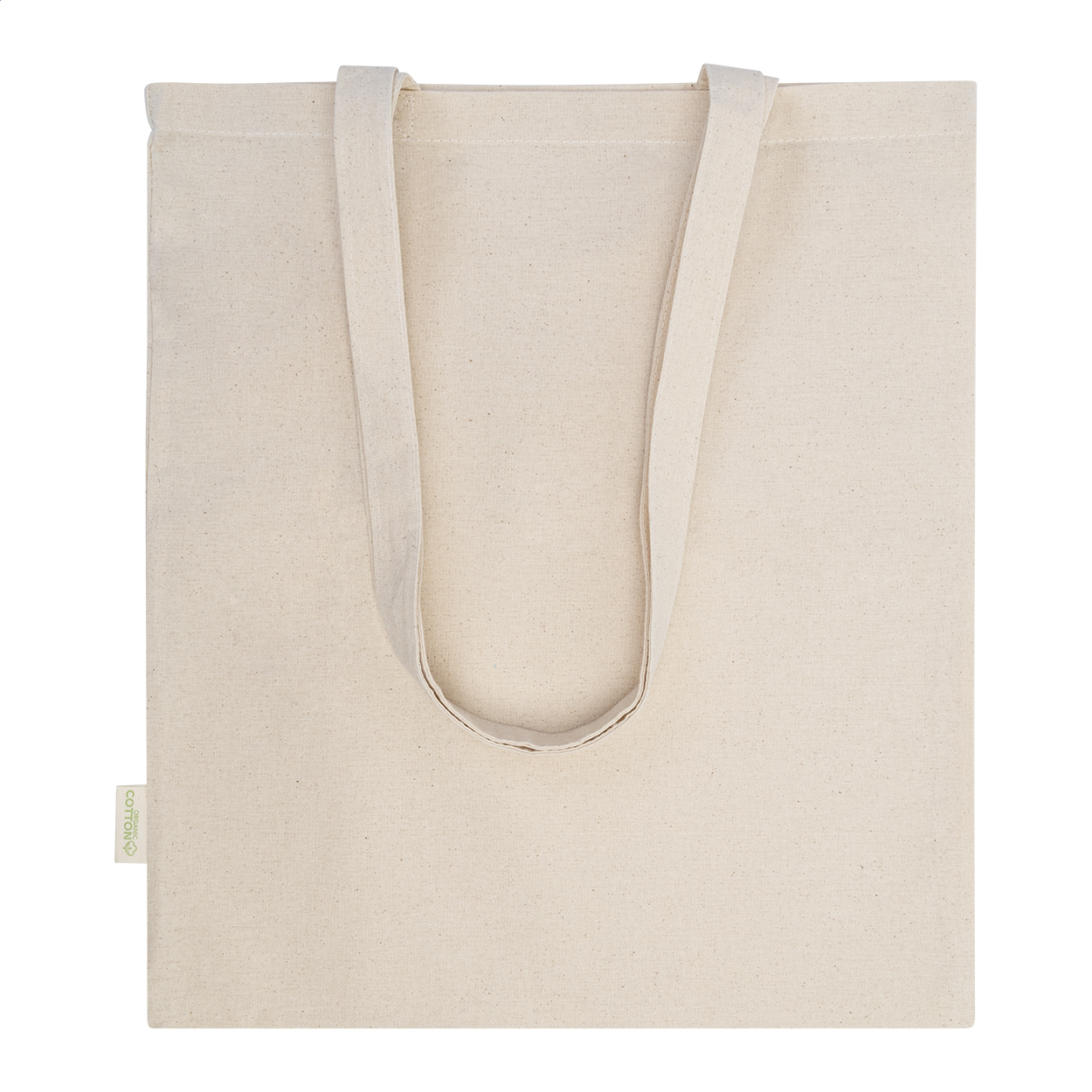 Organic cotton shopping bag with long handles. 100% organic cotton, 180 g/m².