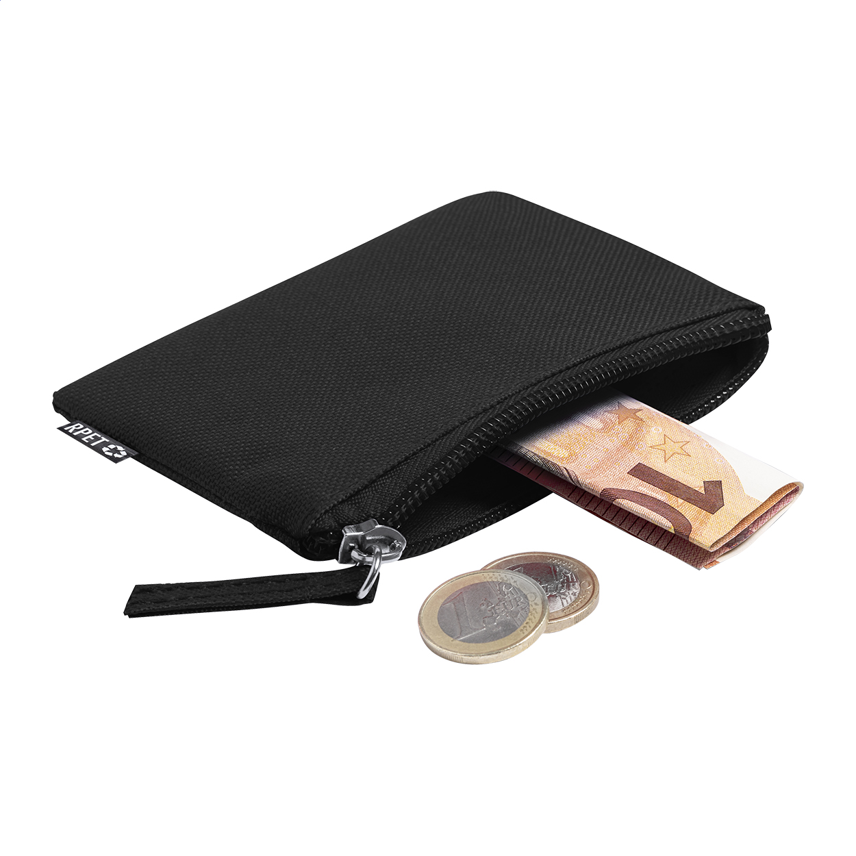 Zipped purse in 600D RPET polyester, with distinctive RPET label.