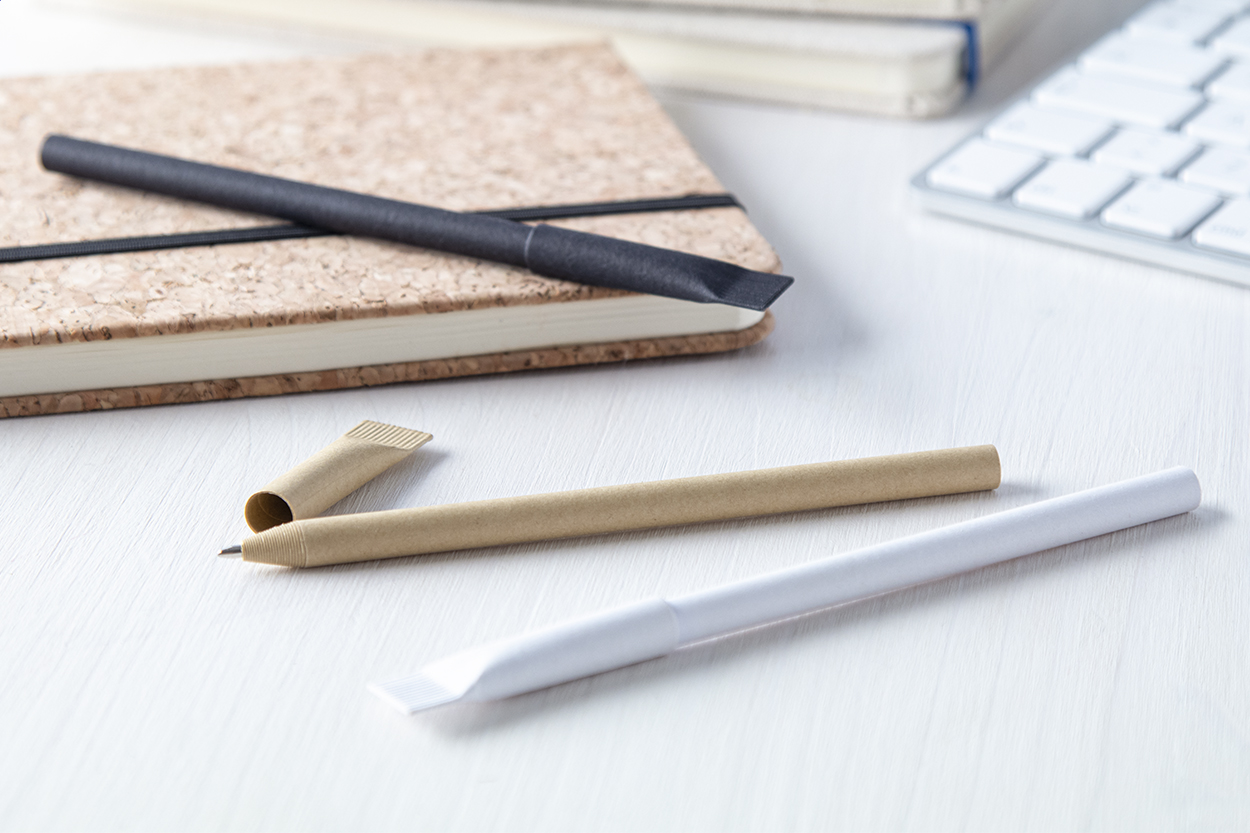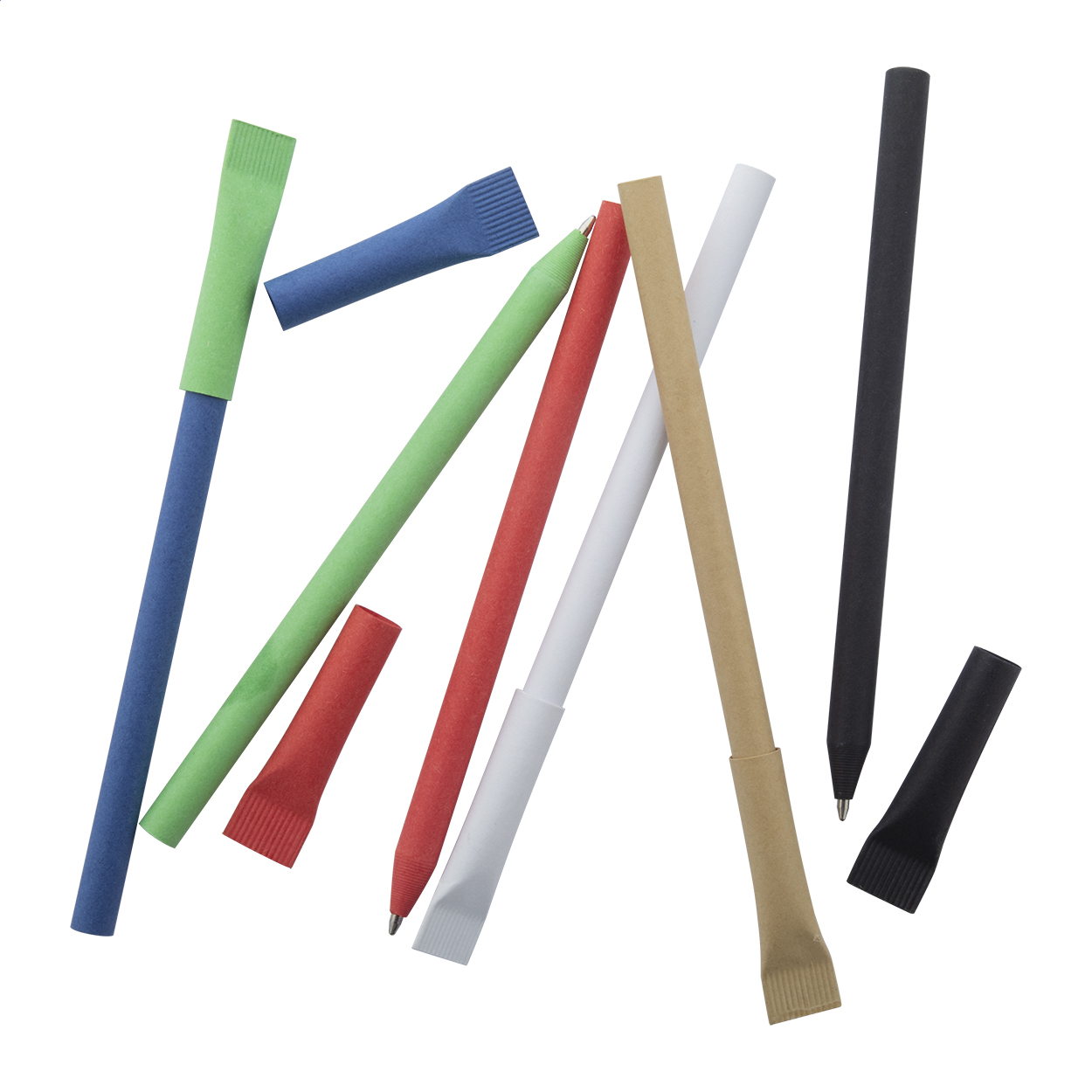Recycled paper ballpoint pen with matching colour cap and blue refill.
