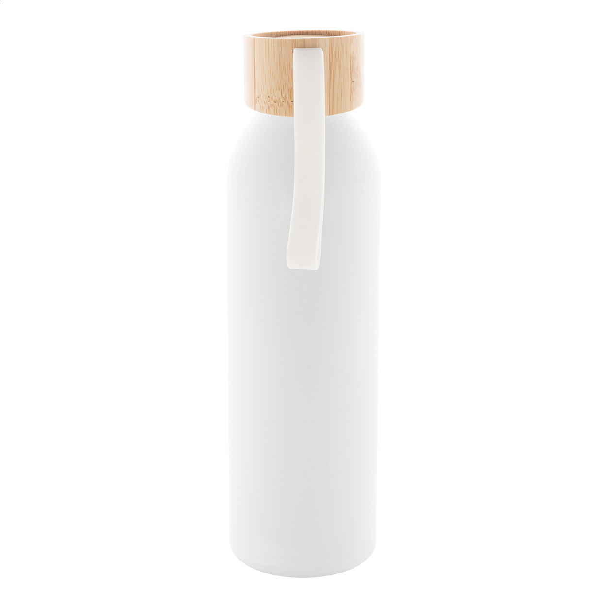 Recycled aluminium bottle with bamboo lid and matching colour silicone carry strap, 600 ml.