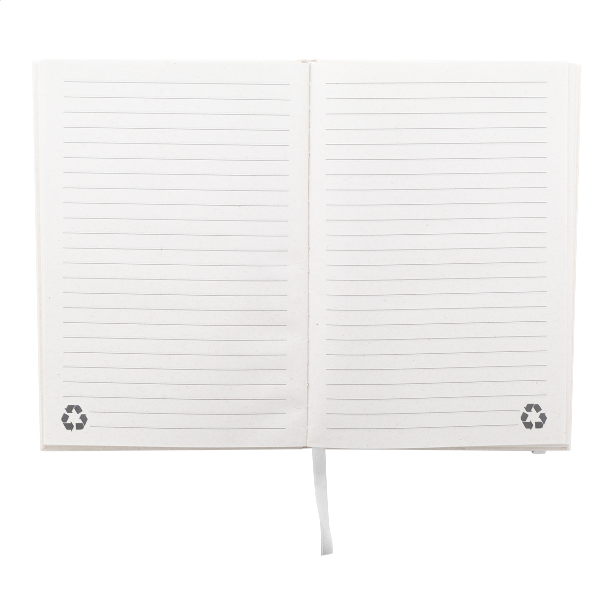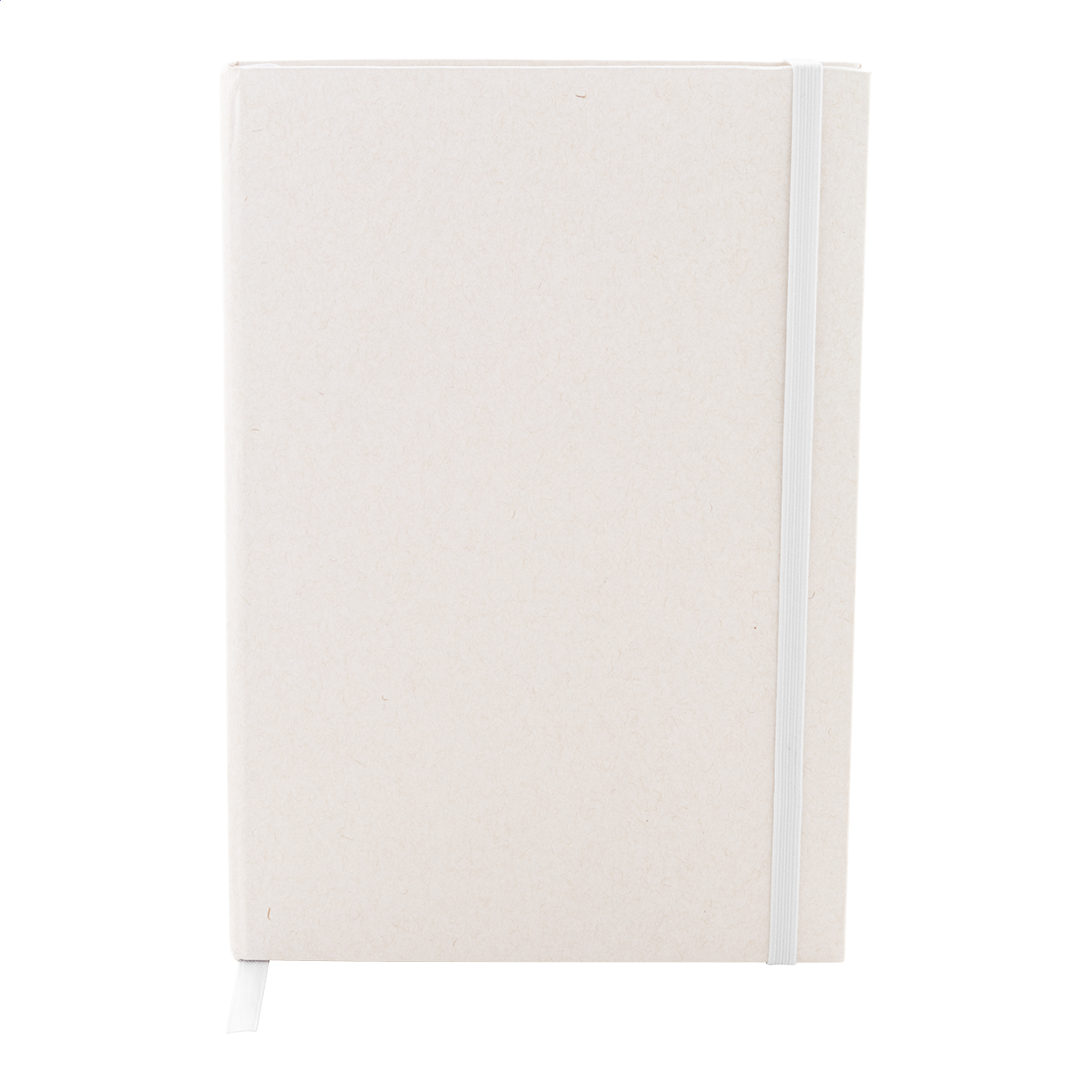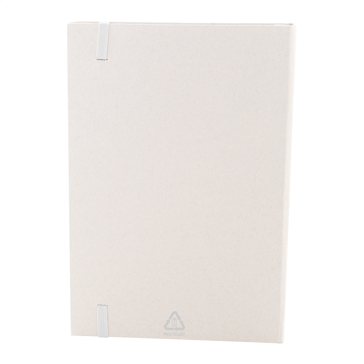Recycled milk carton paper notebook with hard cover, 80 lined sheets and matching colour elastic band. A5 size.