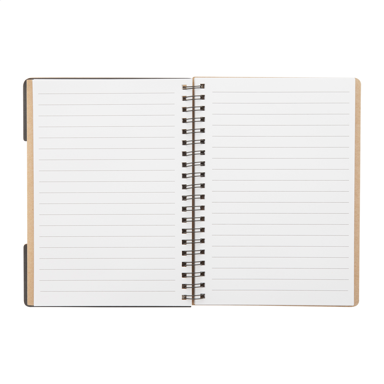 Recycled paper spiral notebook with 60 lined sheets and page markers (5 × 25 pcs).