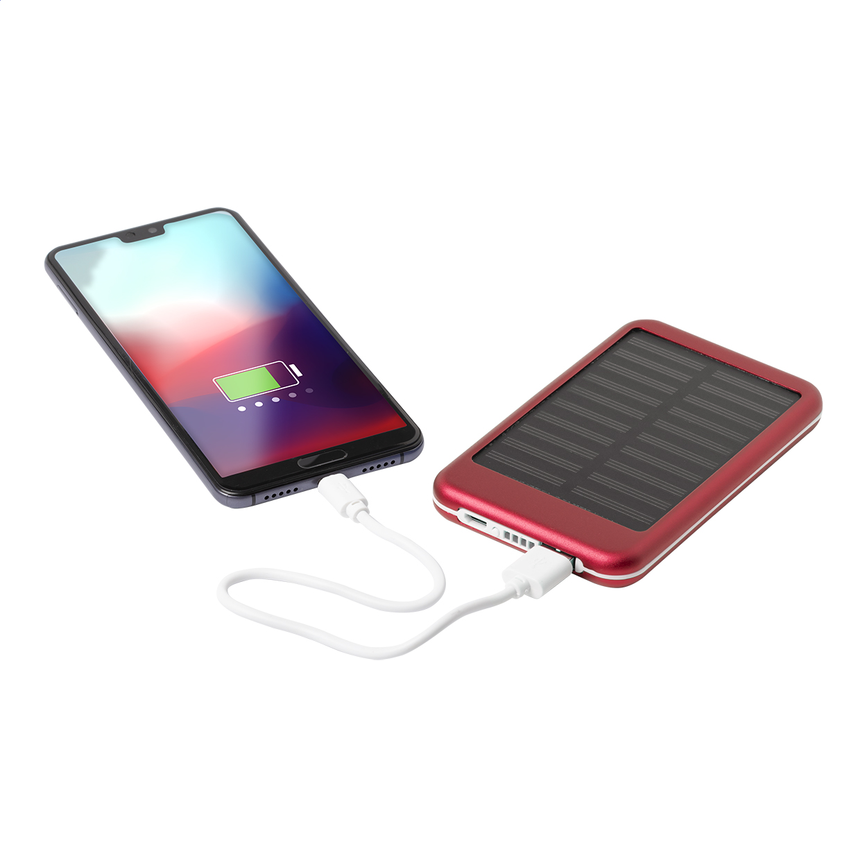 Aluminium USB power bank with 4000 mAh battery and built-in solar charger. Including micro USB charger cable.