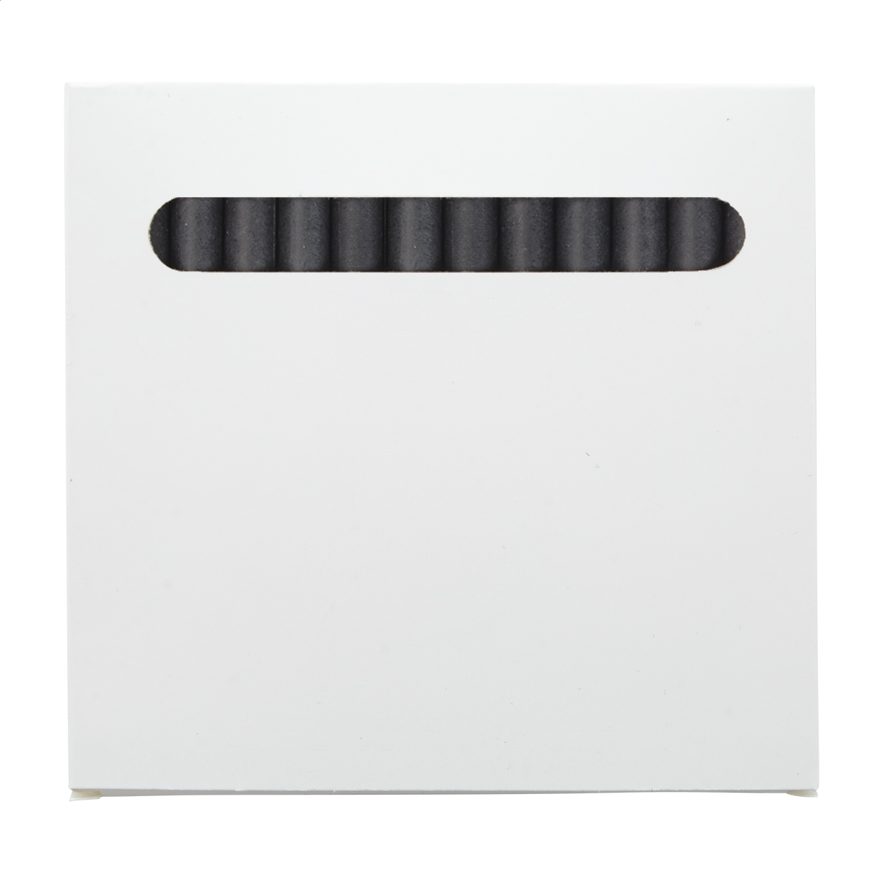 Black paper covered, coloured crayons (12 pcs) in full colour printed paper box. Price includes digital printing. MOQ: 100 pcs.