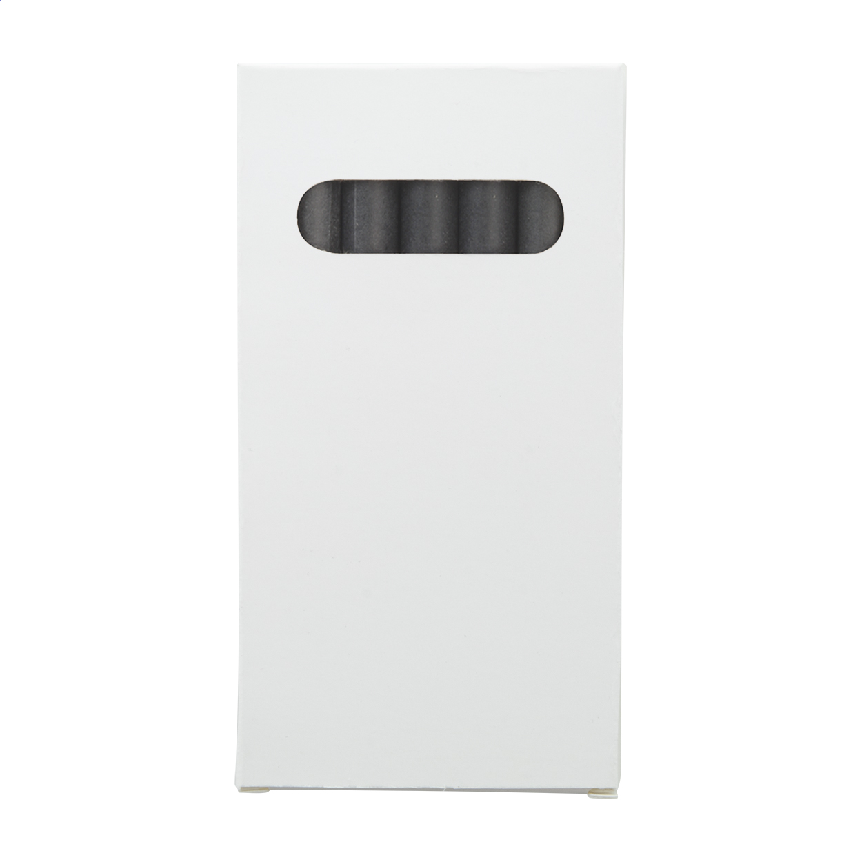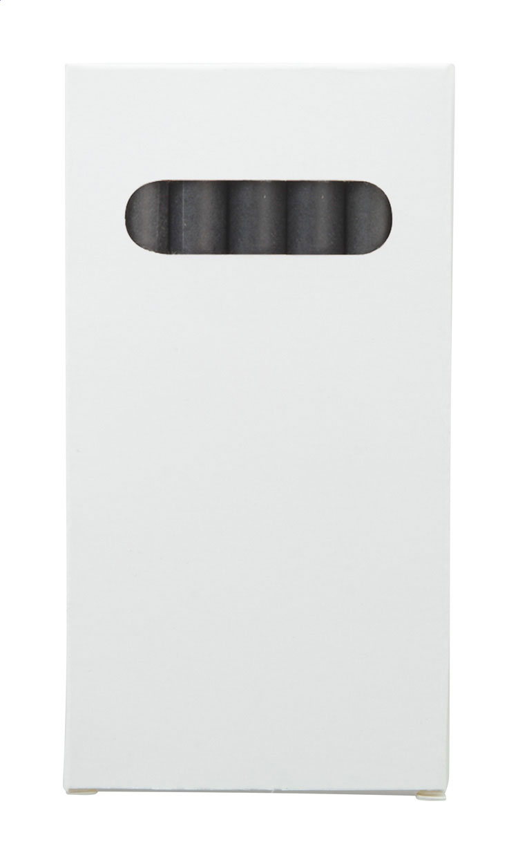 Black paper covered, coloured crayons (6 pcs) in full colour printed paper box. Price includes digital printing. MOQ: 100 pcs.