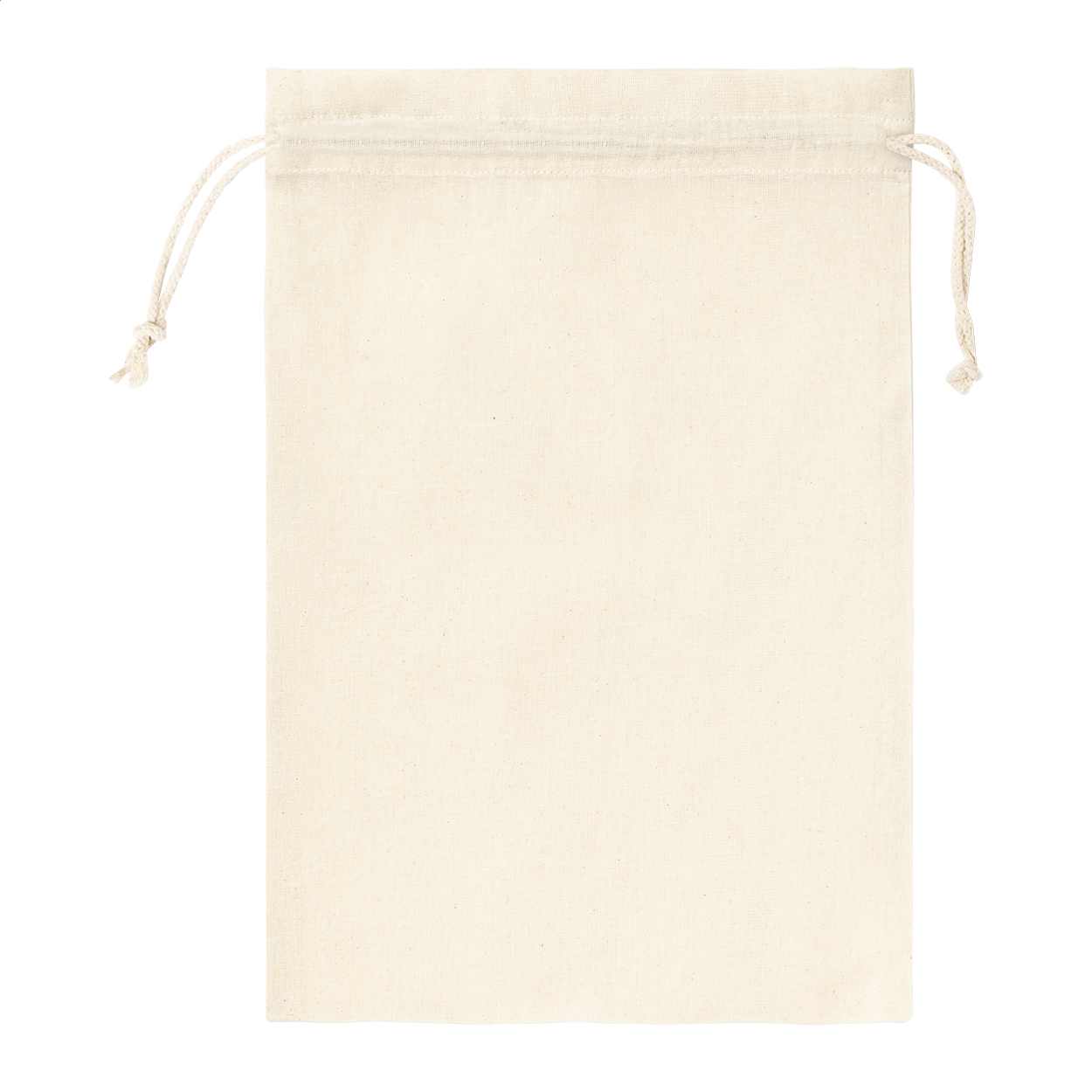 Reusable cotton produce bag with drawstring closure. 100% cotton, 105 g/m².