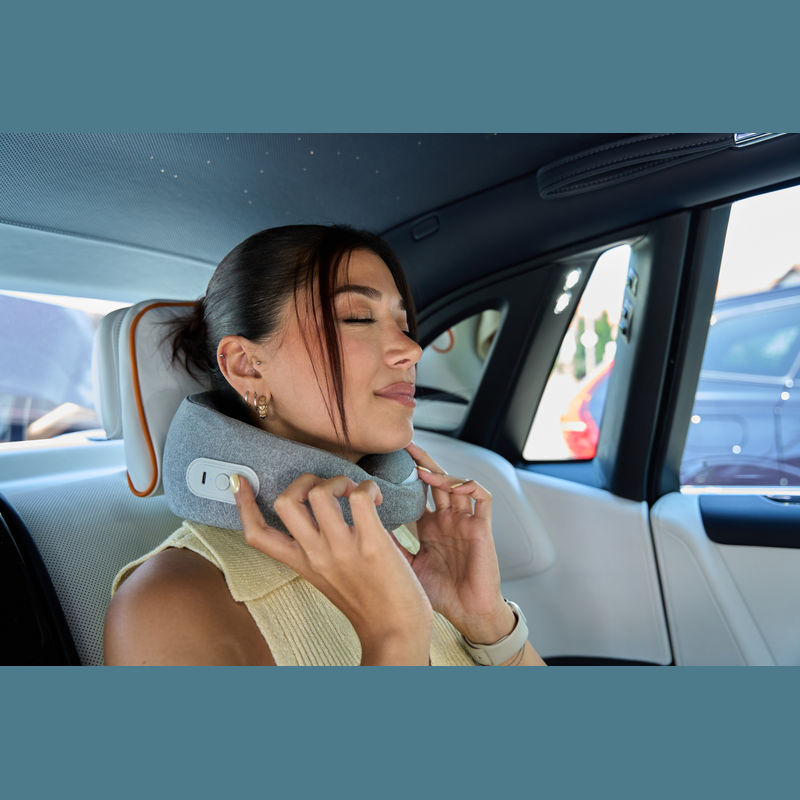 Ergonomic neck pillow from our MoLu premium range, featuring a soothing massage function and integrated warming function that specifically targets tension for optimal comfort. Perfect for travel, the office, or relaxing at home. Modern design, superior comfort, and exceptional craftsmanship. Presented in exclusive gift packaging with a 2-year warranty.