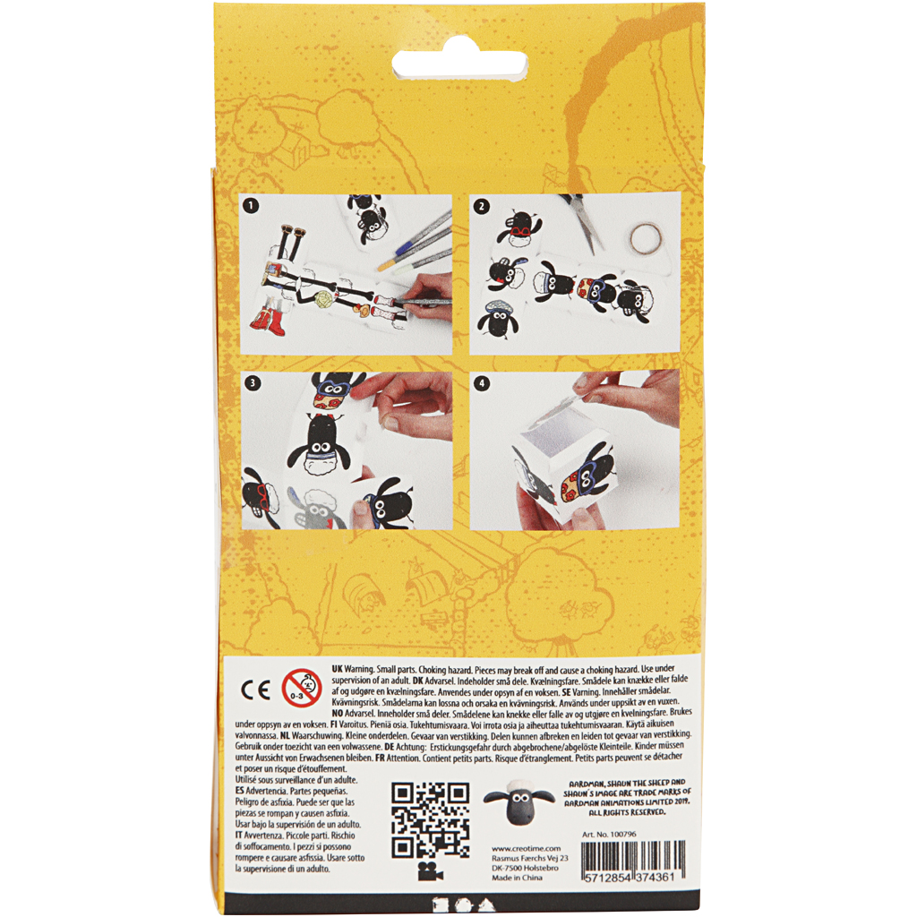 Material set with heavy cardboard stacking blocks with pre-printed motifs from 'Shaun the Sheep' for decoration with ink. Inspiration included Contents: 2 x 3 sheets pre-printed cardboard sheets, 4 pieces. 2-in-1 ink and double-sided tape. Stacking blocks, 1 set