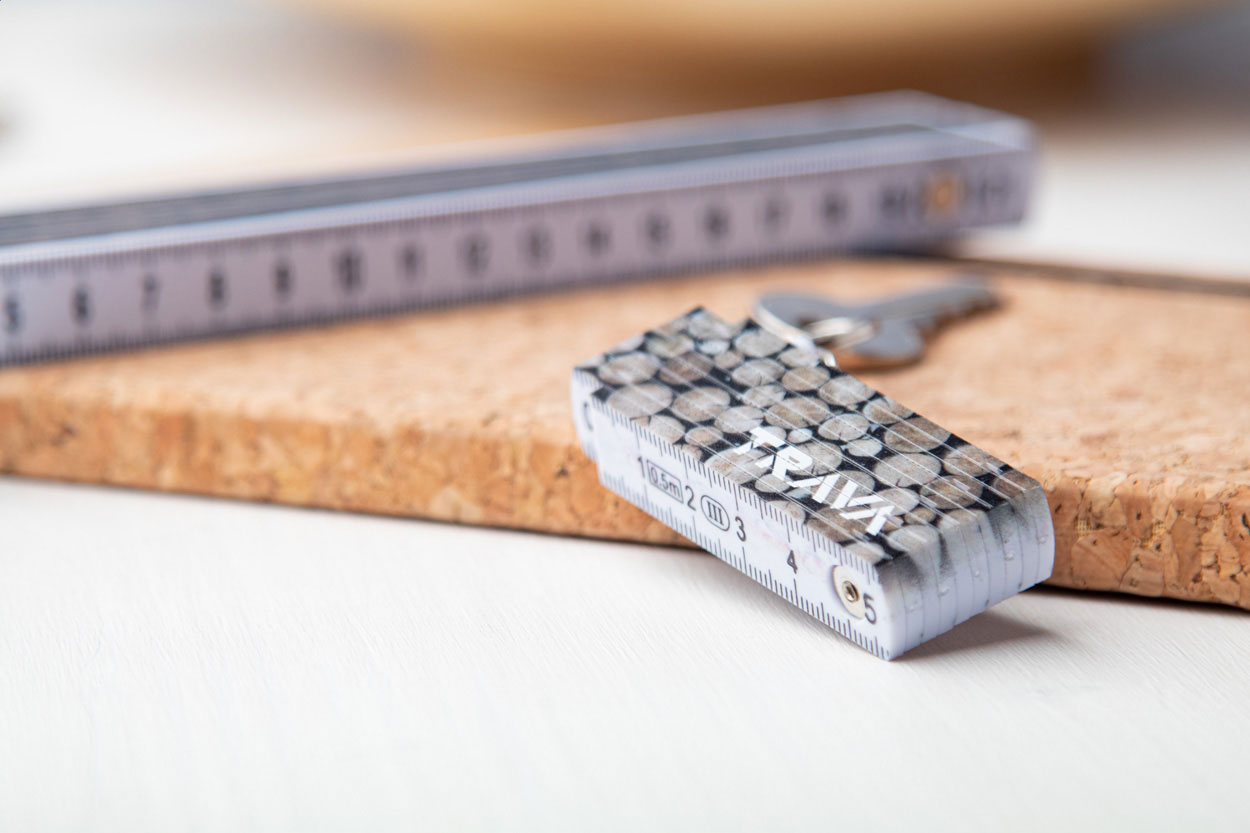Plastic, mini folding ruler with metal keyring, 0,5 m.