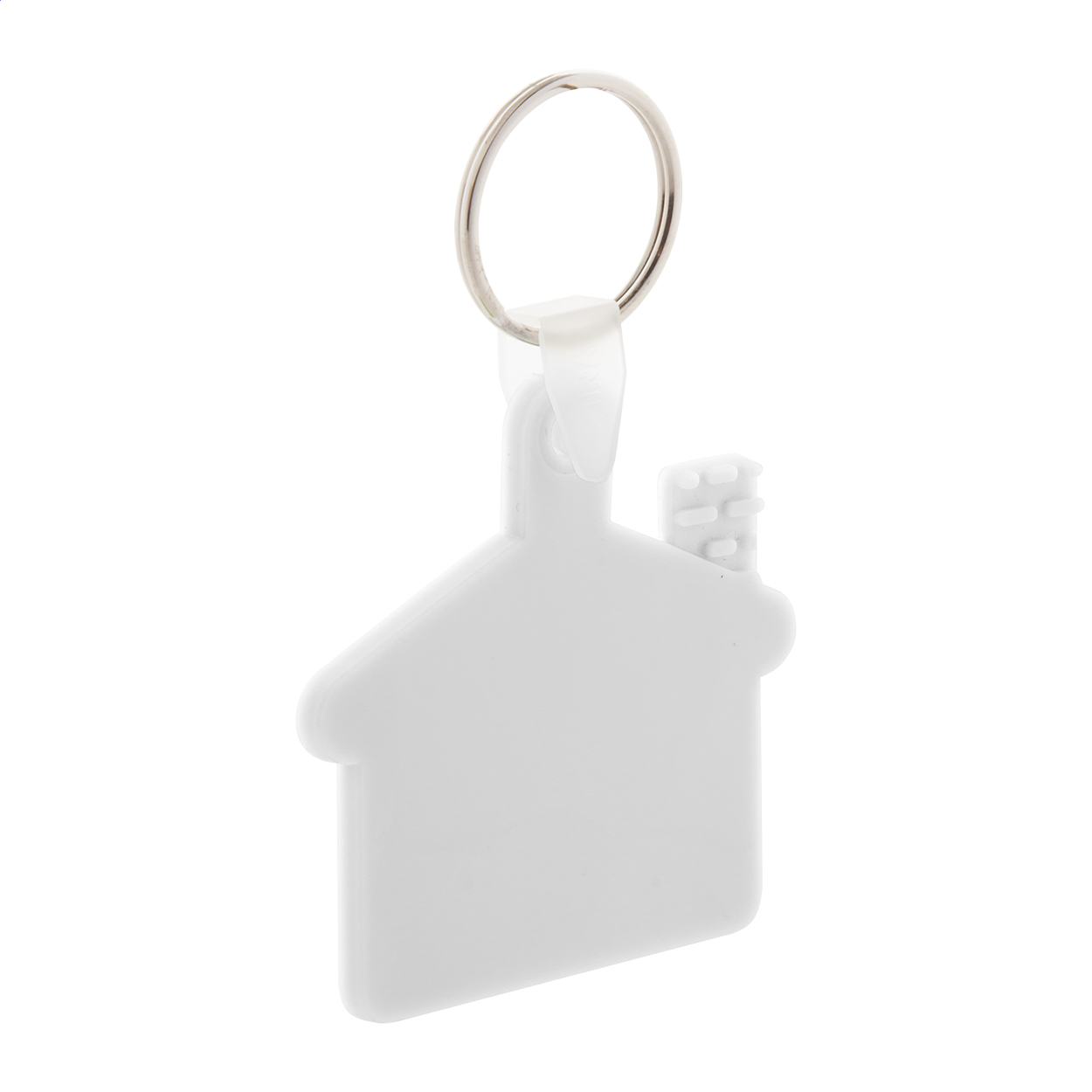 House shaped, plastic keyring with metal ring.