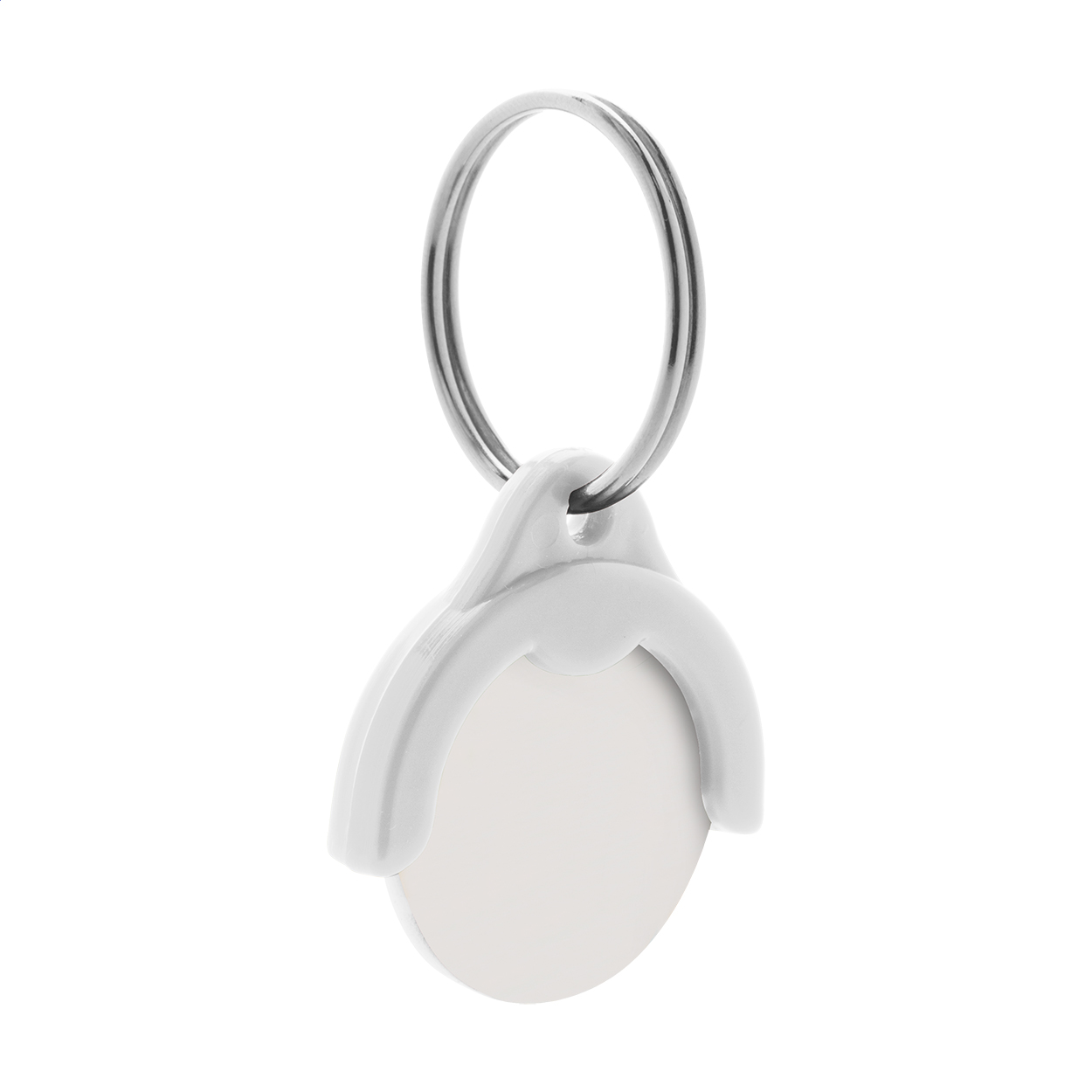 Plastic keyring with full colour printed shopping trolley coin. Price includes UV LED printing on one side of the coin. MOQ: 200 pcs.
