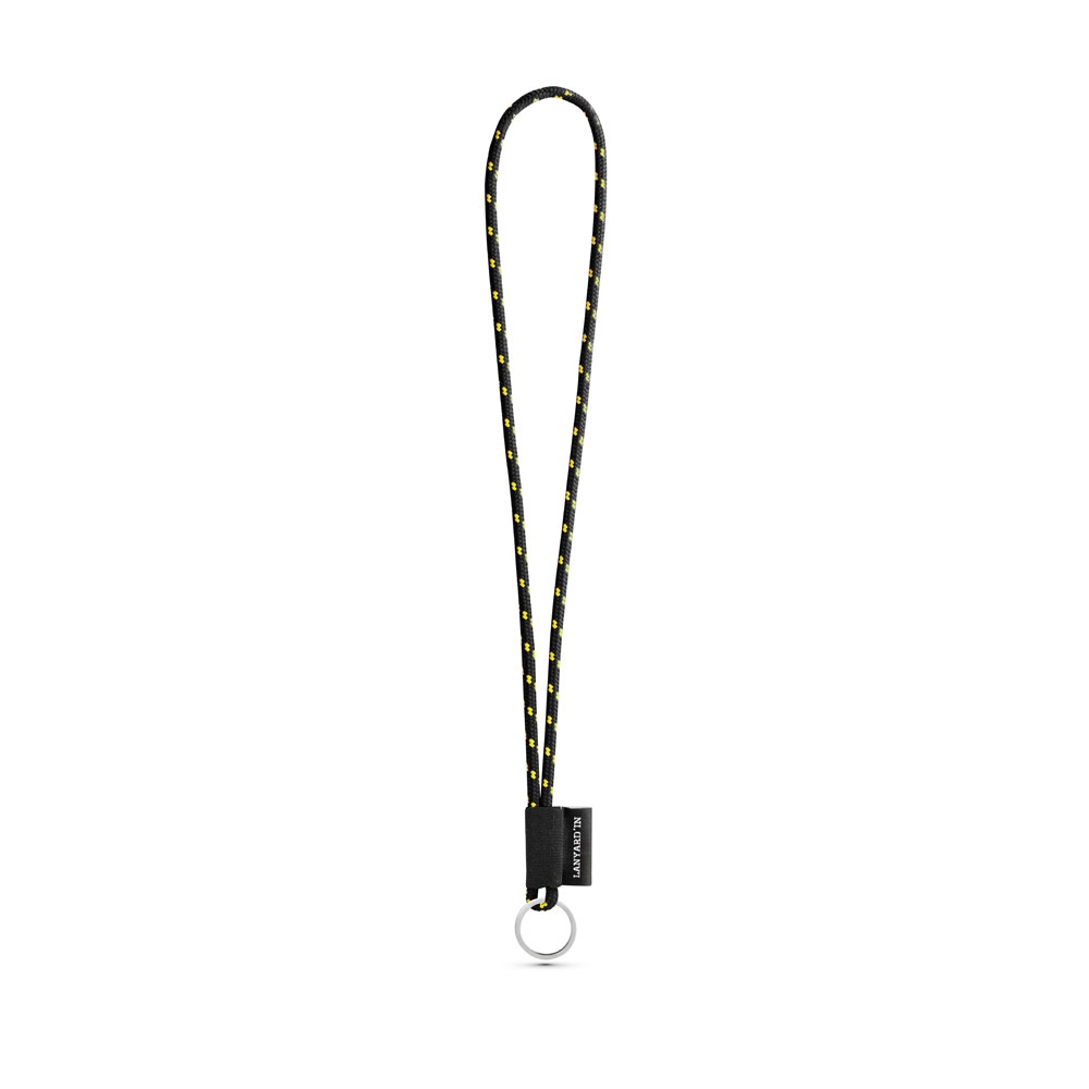 Custom Lanyard long NAUTIC in polyamide with 12 standard colours available for customisation. Includes the following accessories and extras: black coloured elastic, 43 x 15 mm sublimation label and a ø32mm ring. ø7 x 470 mm