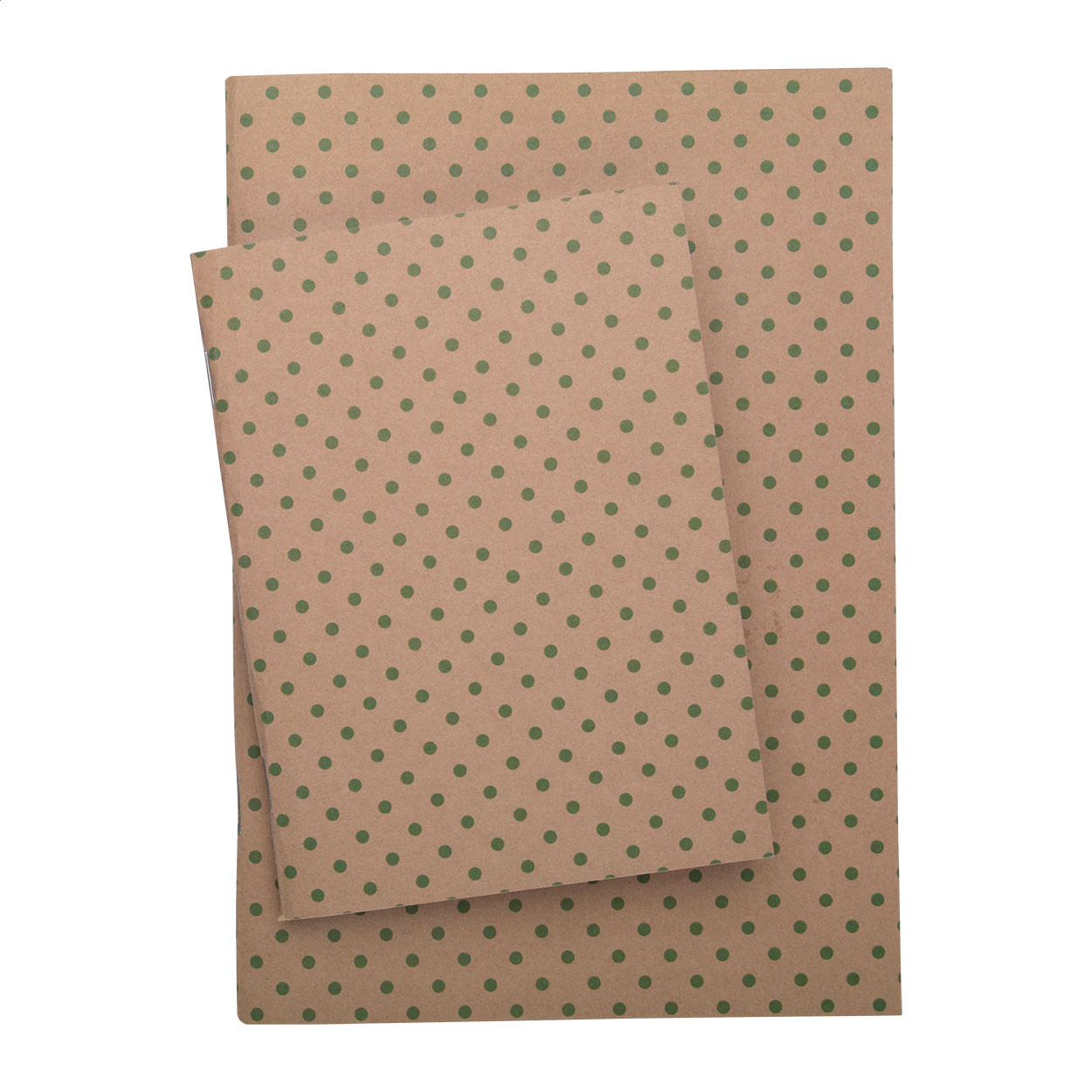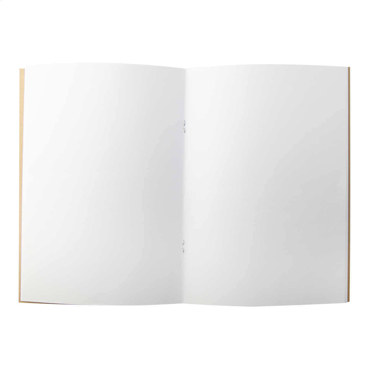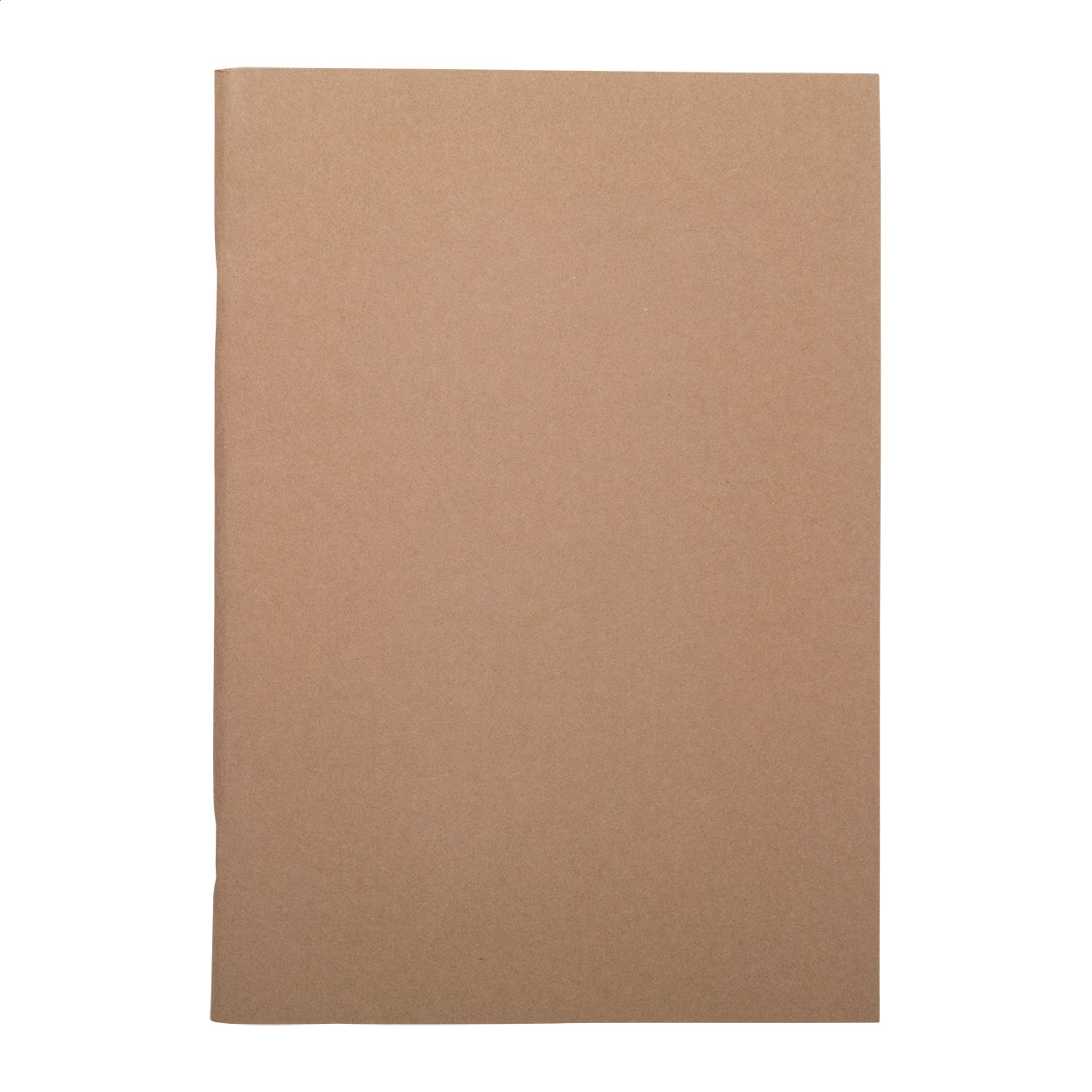 Custom made, recycled kraft paper covered notebook with 32 recycled paper sheets, A5 size. Price includes full colour printed outside cover. MOQ: 100 pcs.