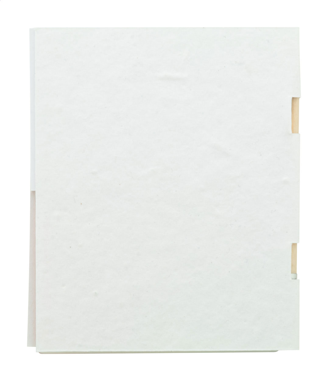 Custom made, seed paper covered sticky notepad with mini wooden pencil. Includes recycled paper sticky notes in 2 sizes (50 sheets of 100×75 mm, 25 sheets of 50×75 mm) and 100 plastic film page markers in 5 assorted colours (12×44 mm). Price includes full colour printed outside cover. MOQ: 100 pcs. With assorted wildflower seeds.