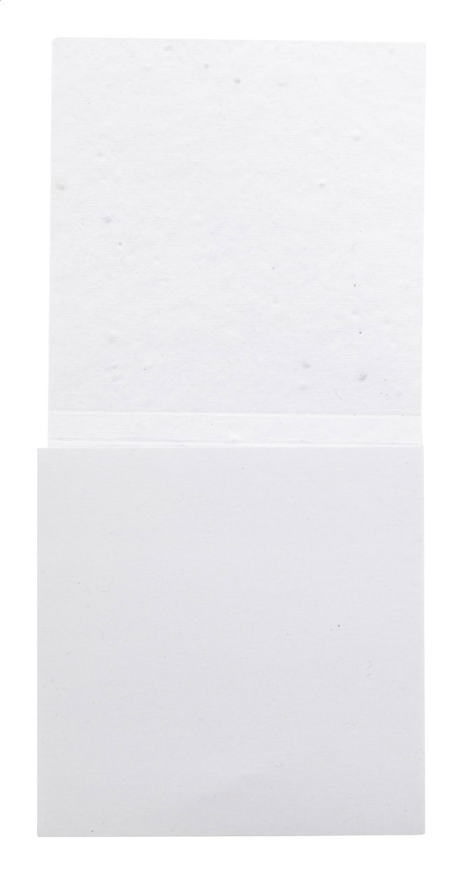 Custom made, seed paper covered sticky notepad. Includes 50 sheets of recycled paper sticky notes (75×75 mm). Price includes full colour printed outside cover. MOQ: 100 pcs. With assorted wildflower seeds.