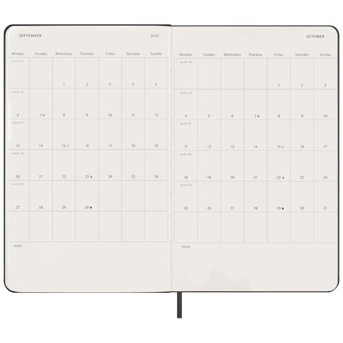 Plan out every day in the minutest detail with the Moleskine 12-month hard cover daily planner. Dated from January to December 2027, this planner is formatted to show one whole day per page – to have plenty of space to record events, appointments, to-dos, reminders and plans. Throughout the year, it grows into a day-by-day physical record of everything accomplished. Features ivory-coloured acid-free paper, a black elastic closure, a page ribbon marker, a colour coordinated expandable inner pocket, and stickers for personal customisation, as well as year stickers for the spine.
