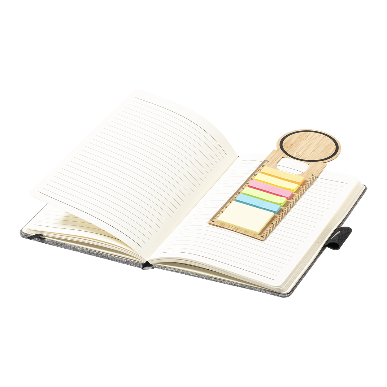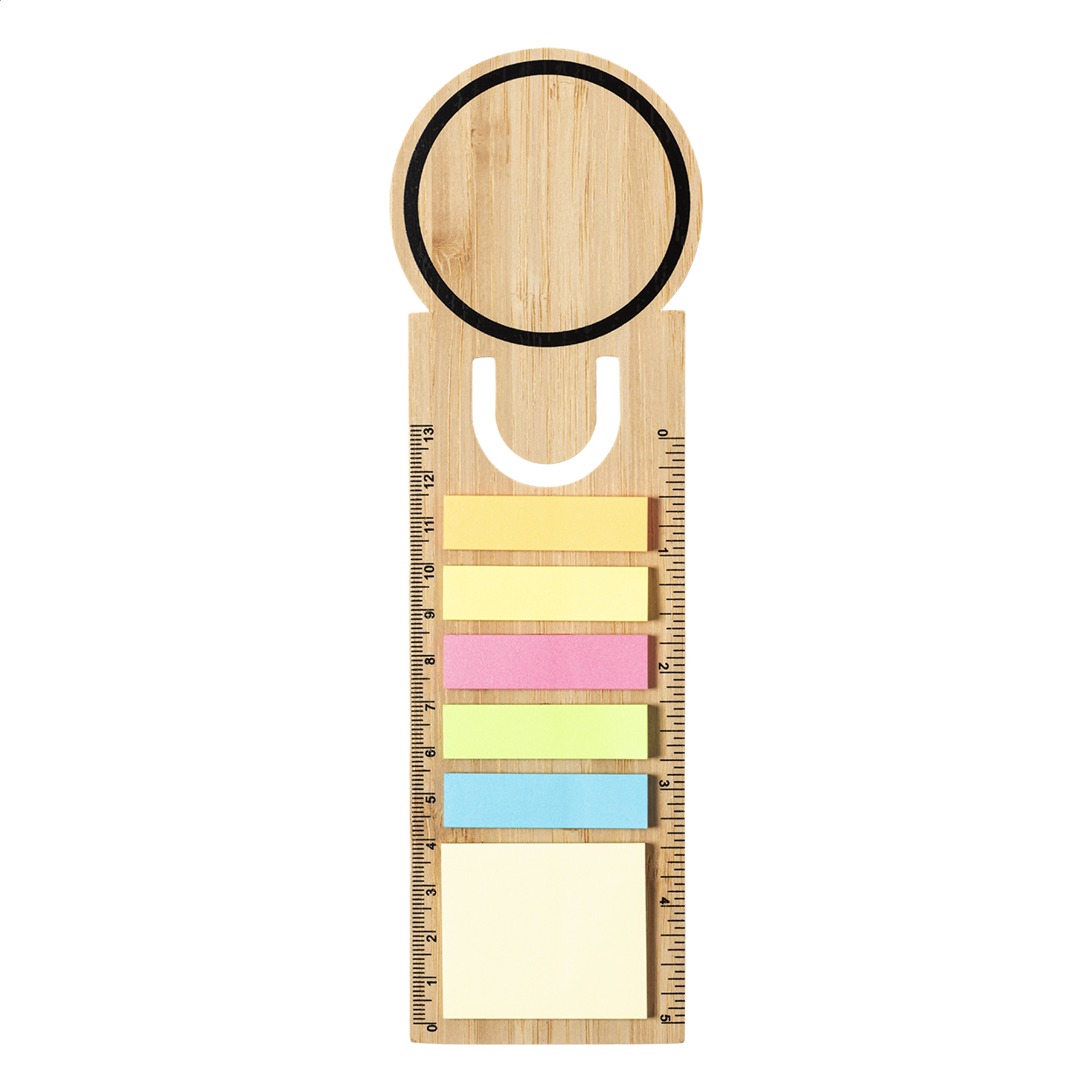 Bamboo bookmark and ruler with 25 sticky notes and 125 page markers (in 5 different colours).