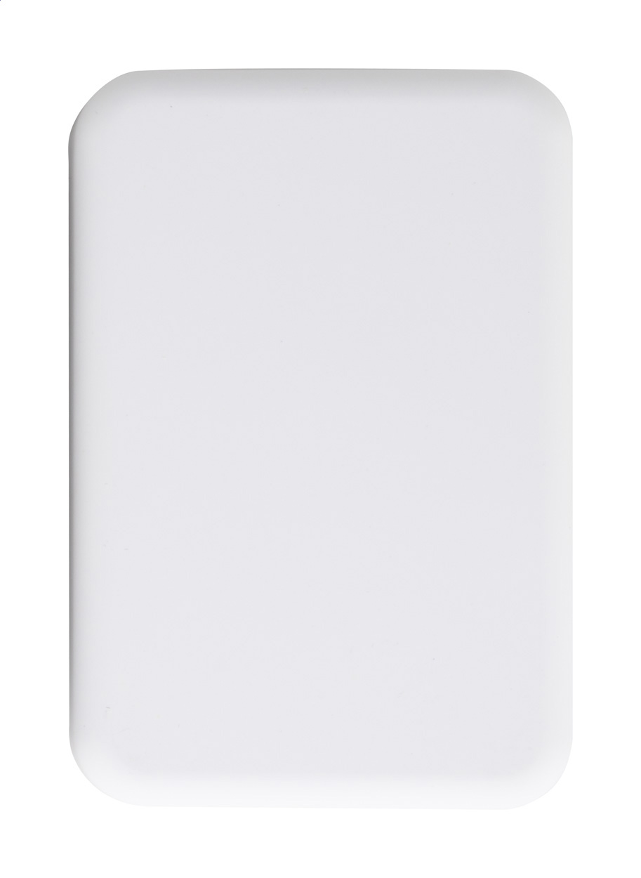 Recycled ABS power bank with 5000 mAh battery and built-in magnetic wireless charger (5W). With USB-C input and charger port. Including self-adhesive metal ring to use the magnetic function on any wirelessly chargeable device. Compatible with iPhone® 12 or newer. Including USB charger cable.