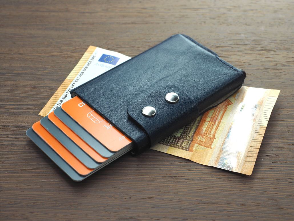 Banknote pocketCoin pocket Holds 6 cardsRegistered design ®RFID protection2 snaps fasteningPaper box included