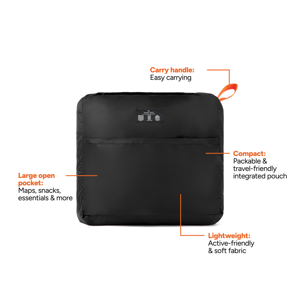 Meet the flexible 3-in-1 blanket. A versatile sidekick for every outing. Use it as an outdoor blanket, cosy camp wrap or practical poncho as its versatile design adapts to every situation, making it the perfect all-in-one solution for outdoor comfort and convenience. Crafted from 25% certified recycled nylon (GRS) and 72% certified recycled polyester GRS) with a spacious size of 140x175cm. The integrated, packable and lightweight pouch makes it travel-friendly and easy to carry. Perfect for camping, hiking, festivals or beach days, this blanket adapts to your needs offering aesthetics, practicality and adventure-ready performance in one. All Nordic Drift products are tested for quality. Because we strongly believe in the performance and durability of our gear, every item is backed by a 5-year warranty on manufacturing defects.