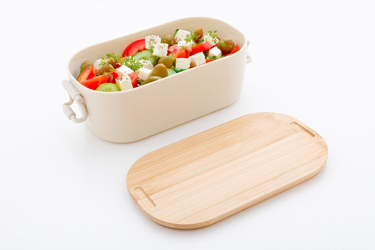 Lunch box in PP plastic with bamboo lid and buckle closure, 1000 ml.