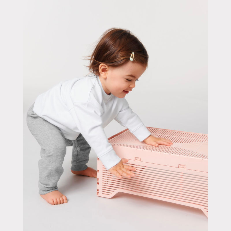 Soft, pure cotton sweatshirt with easy snap shoulder placket for quick dressing. Features durable ribbed hems and natural raw finish. Perfect blend of comfort and style for little ones.