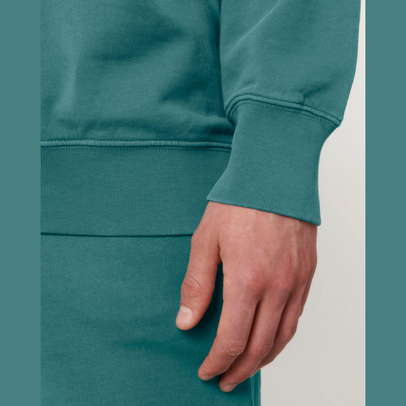 Stylish unisex crewneck with a vintage washed look. Features ribbed details and durable stitching. Each piece is unique due to garment dyeing. Follow care instructions.