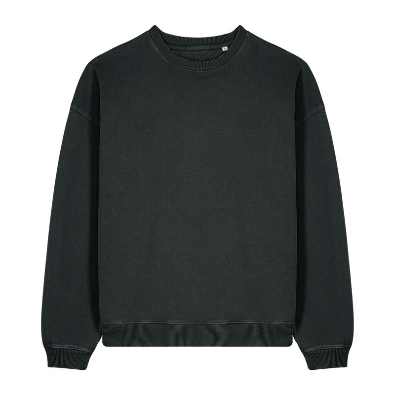 Premium oversized crew neck sweatshirt in 100% organic cotton, 350 g/m². for a unique vintage look. Cozy brushed inside, perfect for custom prints. Trendy and timeless style.