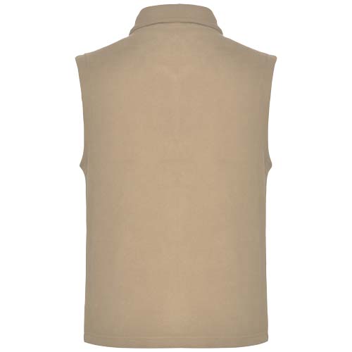 Fleece vest with polo neck and matching zipper. Side pockets with matching zipper. Removable label. The model is 185 cm and is wearing size M.