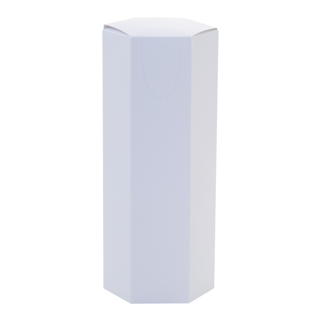 100 pcs of 2-ply recycled paper tissues in custom made hexagonal paper dispenser box. Price includes full colour printing. MOQ: 100 pcs.