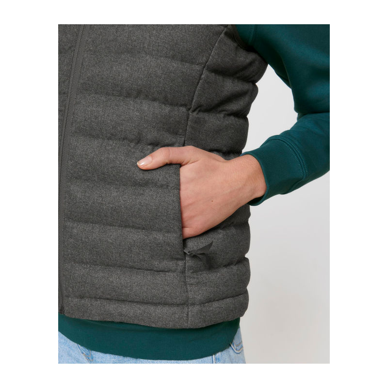 Cozy and stylish, this sleeveless body warmer features a high collar, quilted design, and adjustable hem. Enjoy zipped pockets and a flattering shape with side panels.