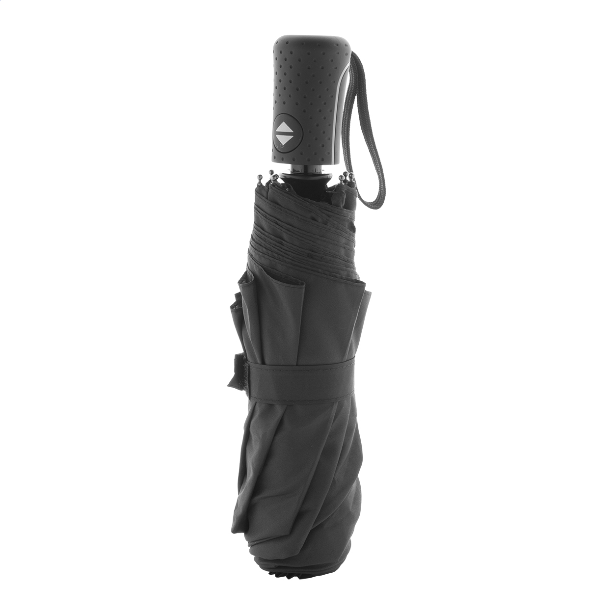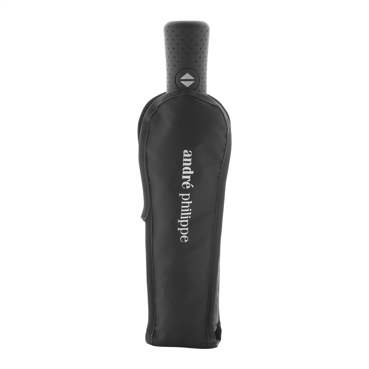 Full automatic (open/close), windproof folding umbrella with 8 panels, rubberized grip, metal shaft and frame. 190T pongee. In branded carry case. André Philippe brand product.