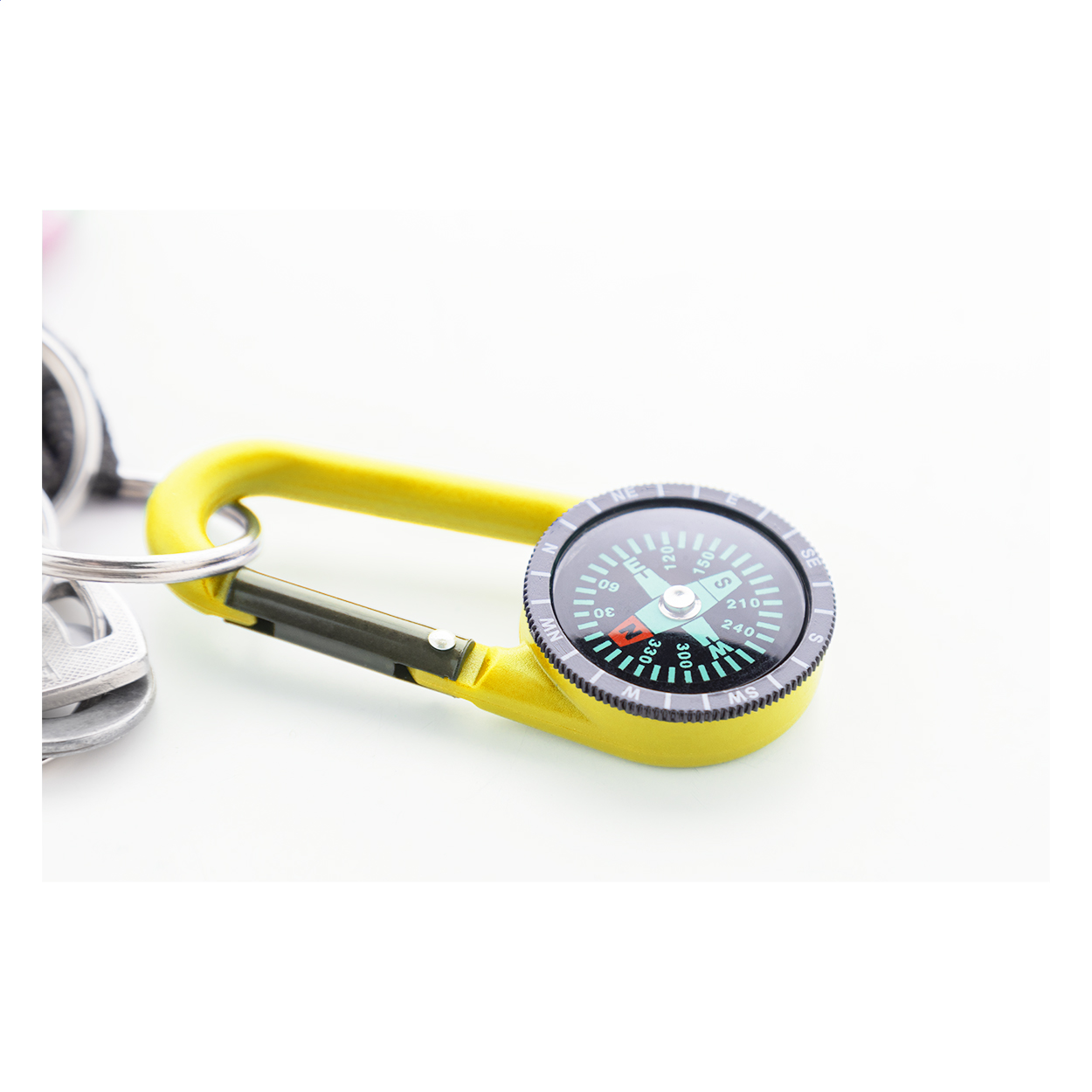 Plastic carabiner with compass.