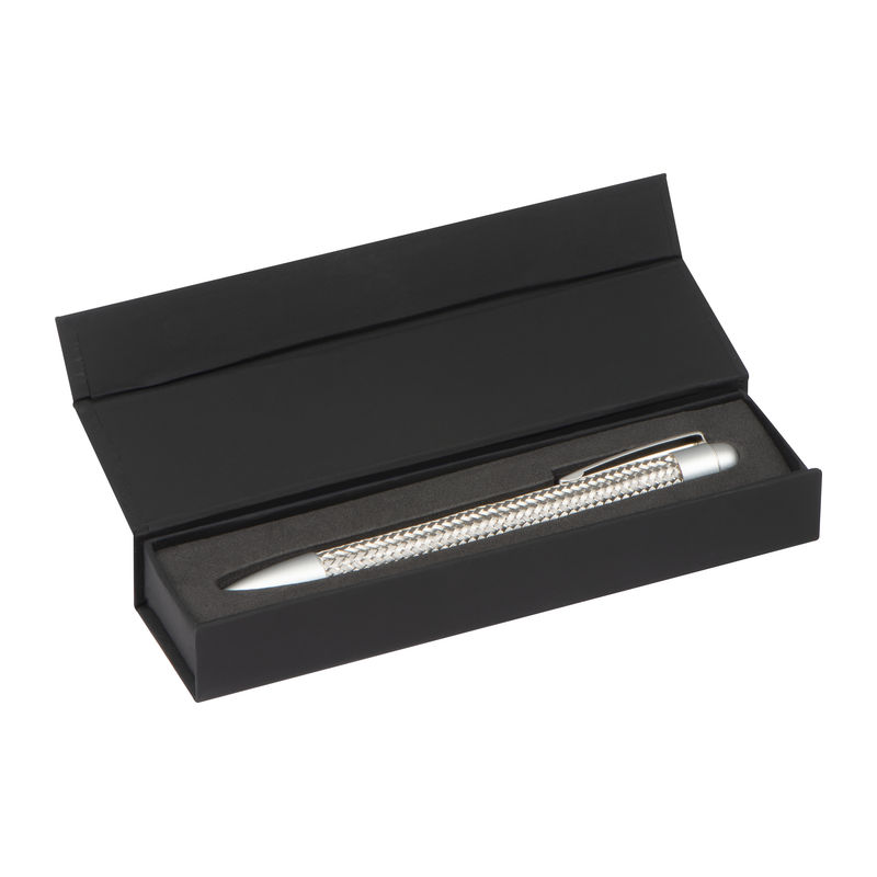 Metal drop-action ball pen manufactured in the highest quality. You'll love it! We will engrave your logo onto the clip.