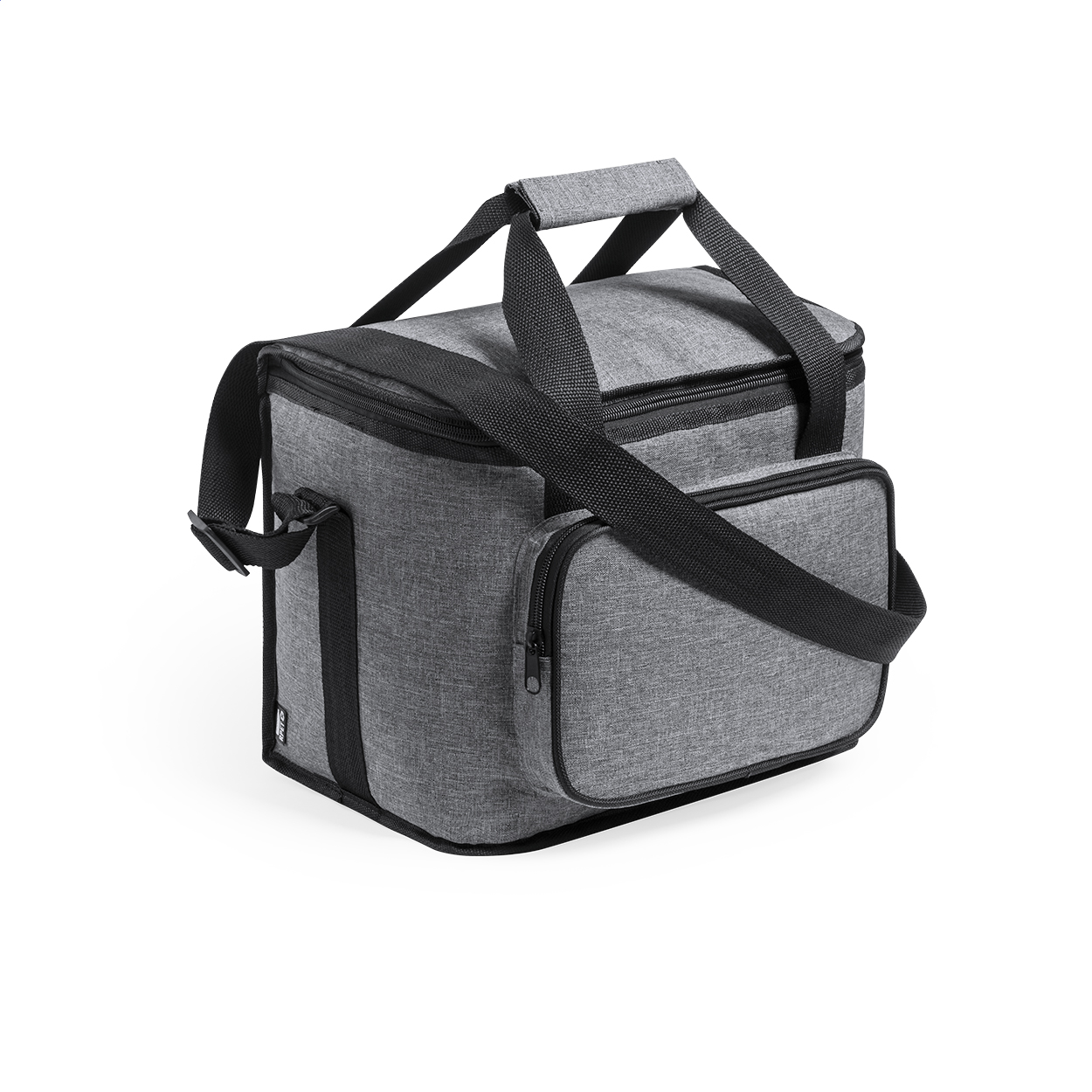 Geantă de răcire RPET cu căptușeală PEVA, compartimente cu fermoar, mânere cu velcro și curea de umăr reglabilă. Cu etichetă distinctă RPET. Poliester 600D RPET.