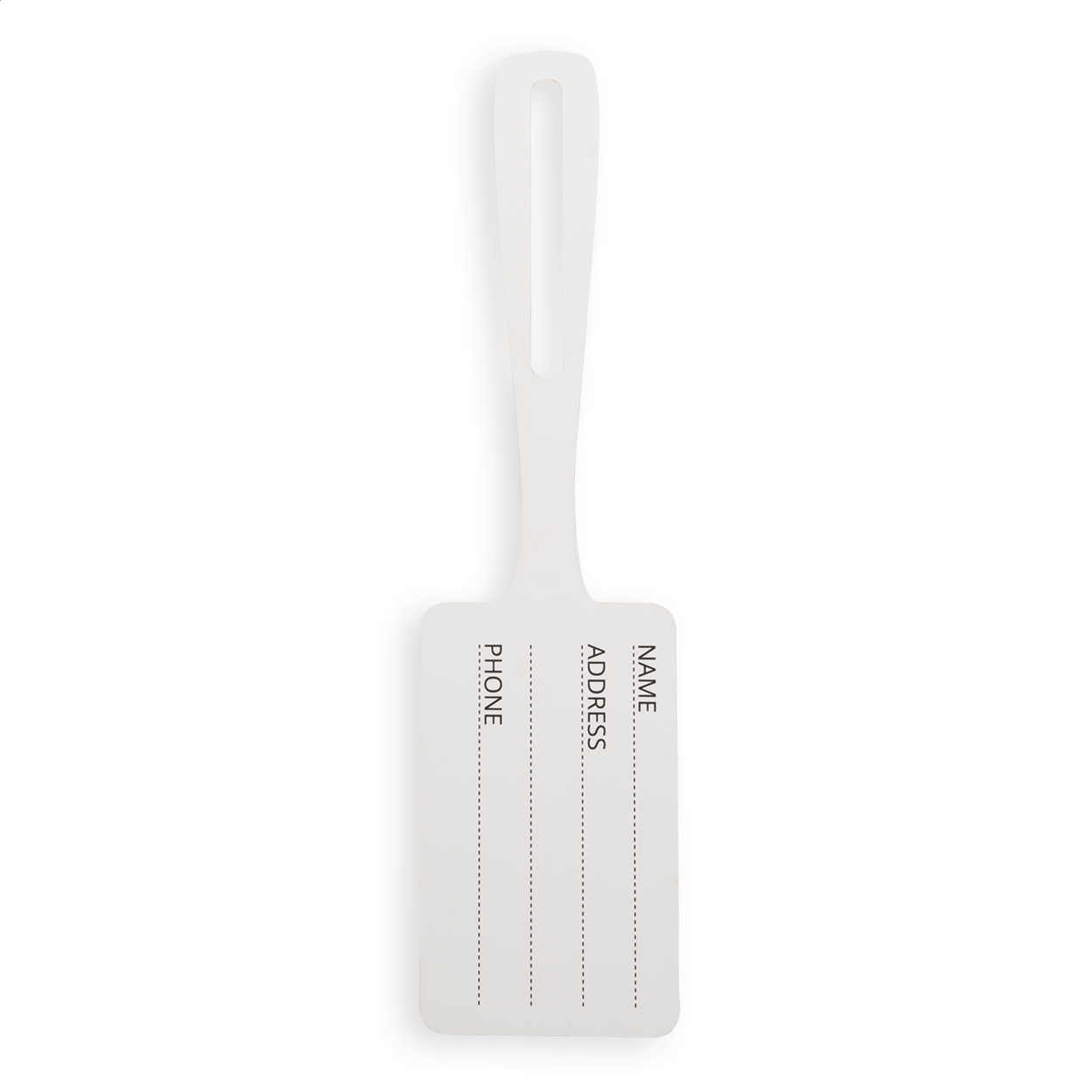 Etichetă personalizată pentru bagaje, din hârtie rezistentă, impermeabilă. Prețul include imprimarea full colour pe o față. Cantitate minimă de comandă 250 buc.