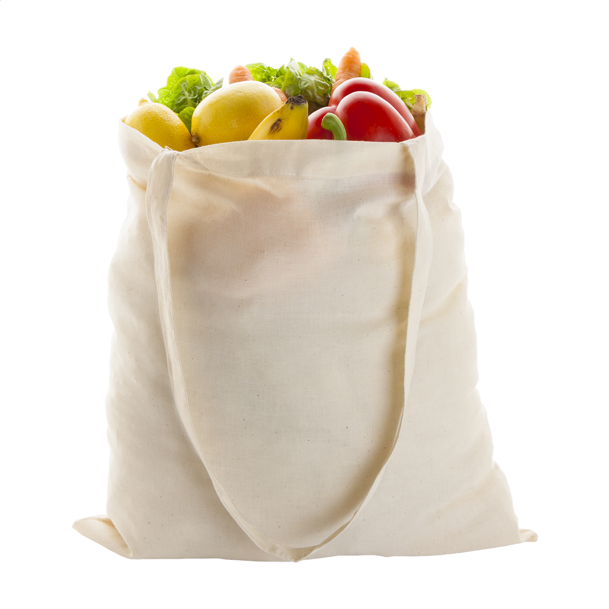 Sacoșă de cumpărături, din bumbac, cu mânere lungi. 100% bumbac, 105 g/m².